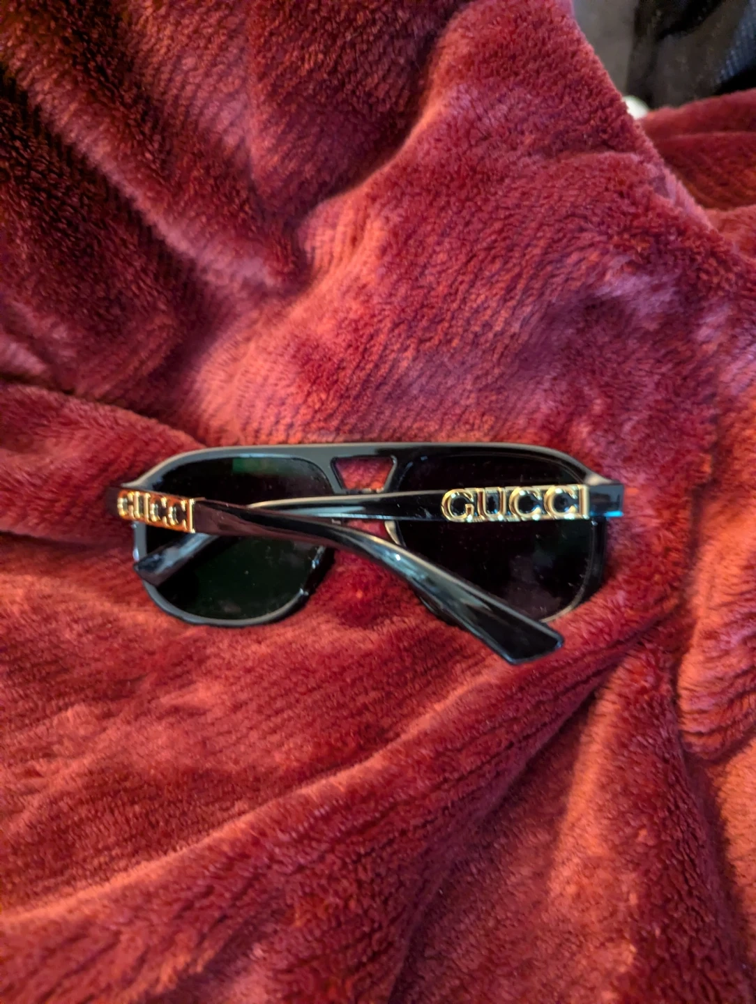 Selling a pair of Gucci sunglasses! They're in great condition and ready for a new owner. They have a sleek, stylish look that will elevate any outfit. Perfect for sunny days or adding a touch of sophistication to your look