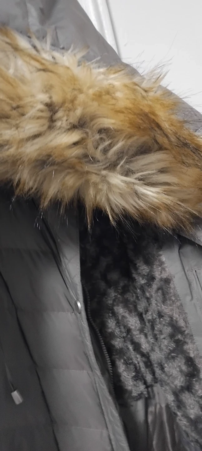 Grey puffer coat from Identity. It's a size medium and features a warm faux fur lining and trim on the hood. Zipper and button closure.There are 2 pockets on the front and 1 inside pocket.It is really warm and falls beneath the knee.Looks really nice and beautiful.