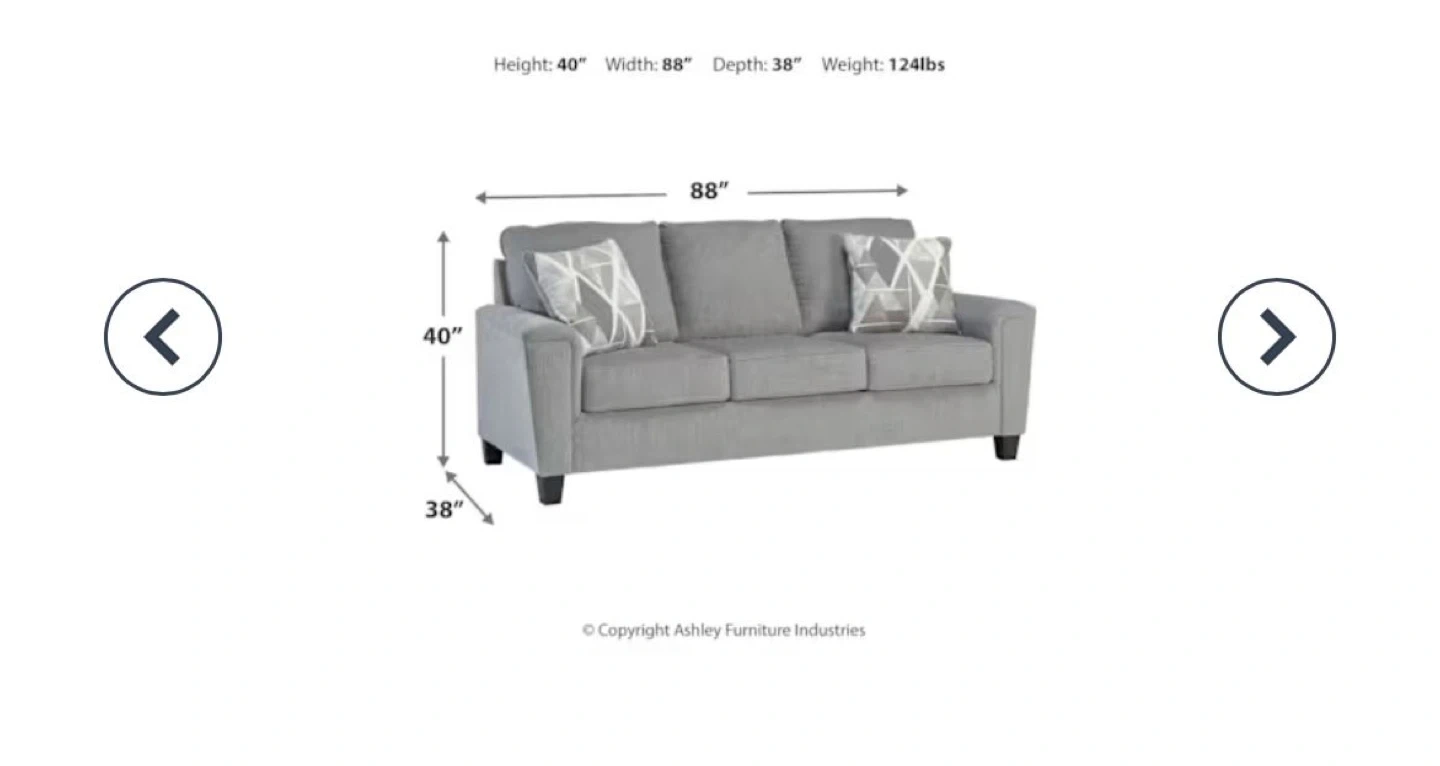 Dimensions: 88" W x 40" H x 38" D.