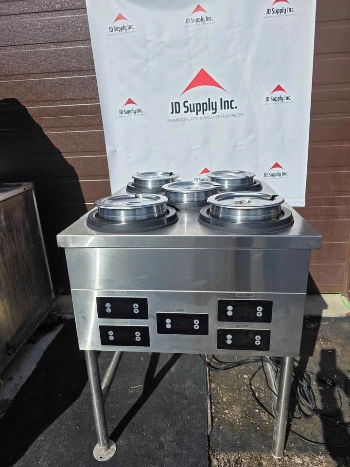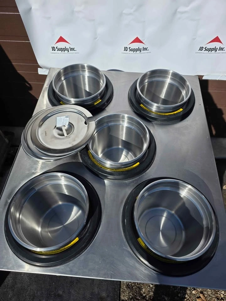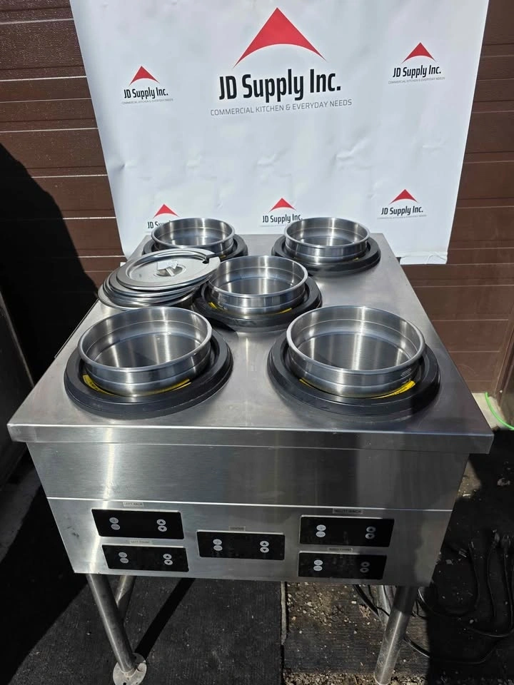 Table is in great condition, comes with 5 brand new inserts with lids. This Table was customer built and is perfect for multiple uses. Each induction warmer is 120v, they all run off single plugs. Pickup in Brantford. Let me know if you're interested!