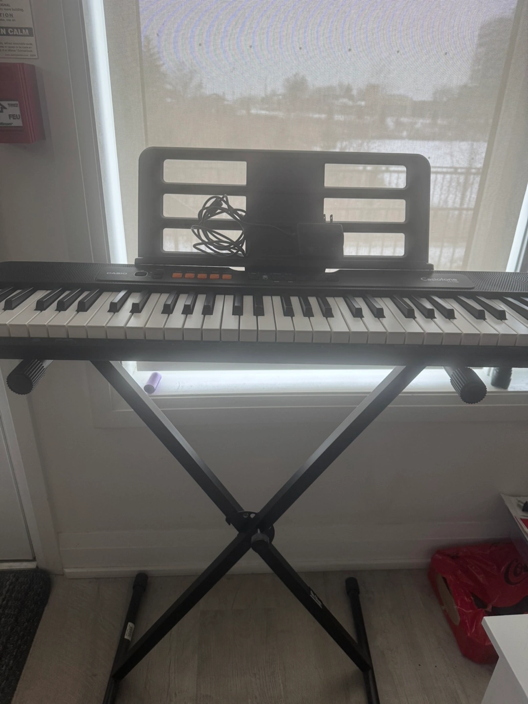 Casio Casiotone CT-S100 keyboard. Includes stand and power adapter. Good condition.