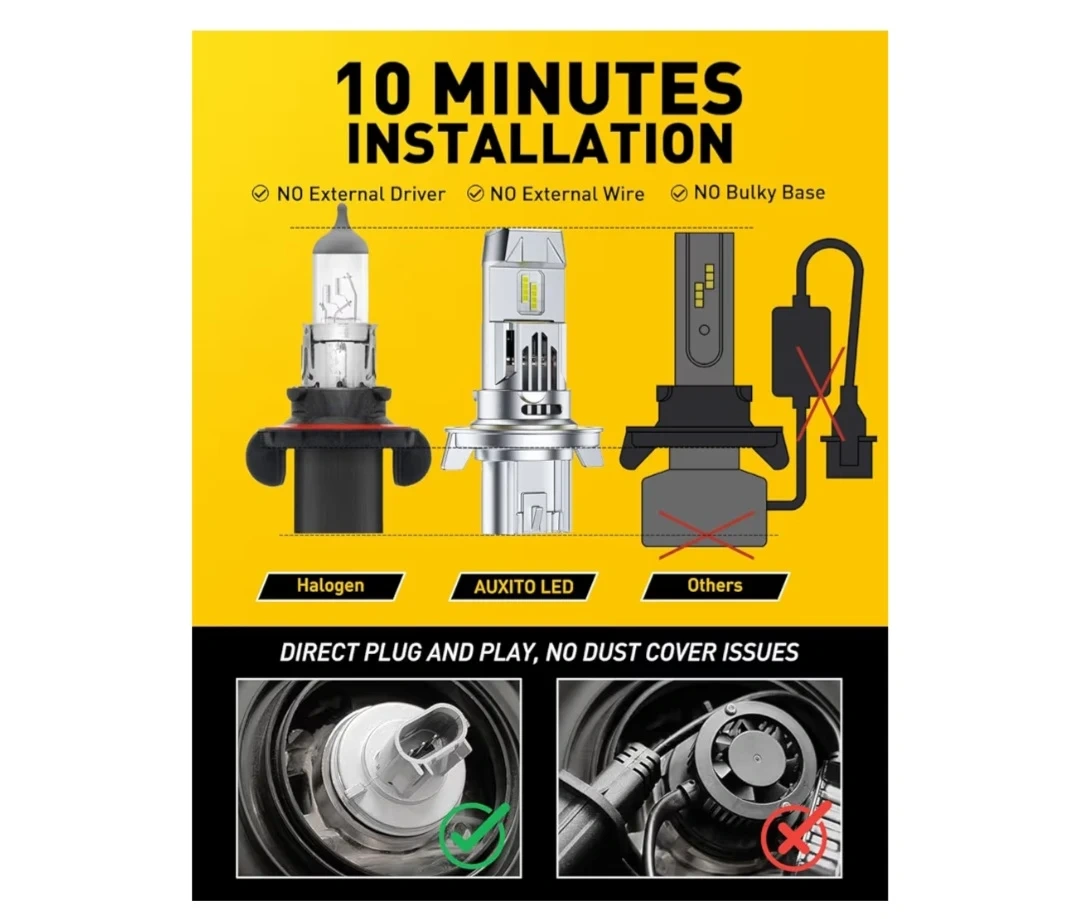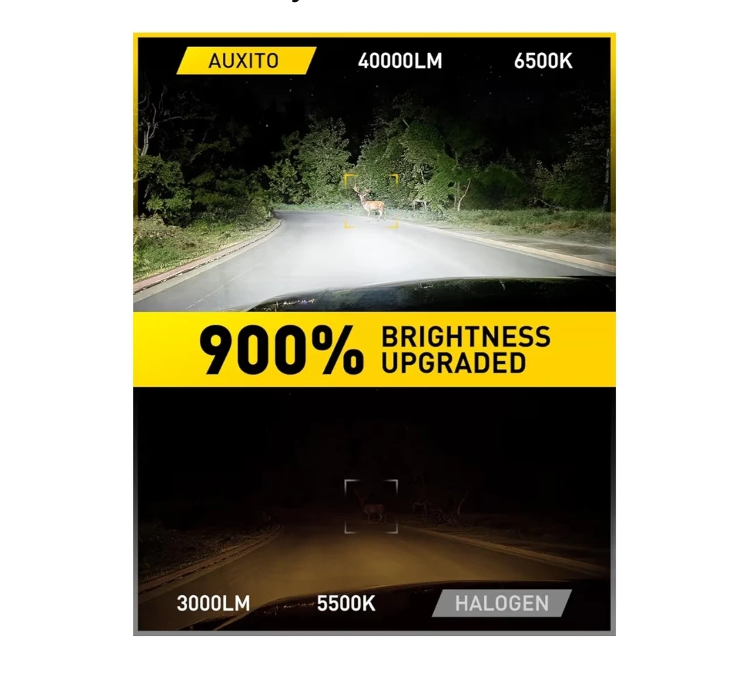 AUXITO H3 9008 led headlight bulbs, 6500K cool white, 40000 Lumen per set, 900% brighter