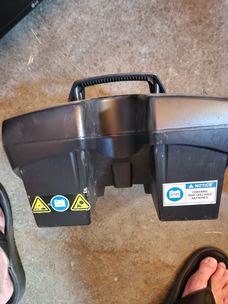 23Selling a Go-Go Elite Traveller mobility scooter battery pack. It's black. This is a portable, non-spillable battery