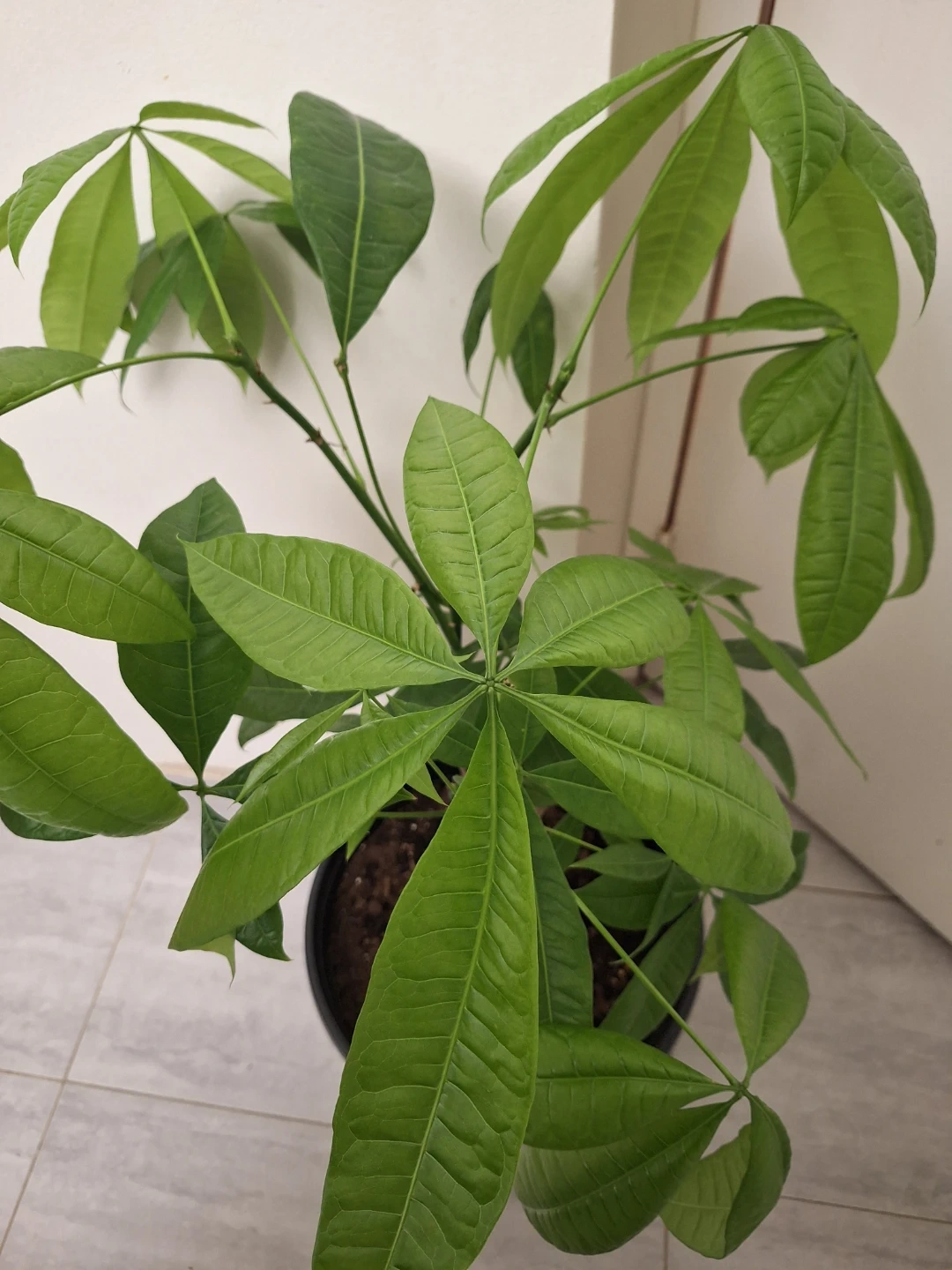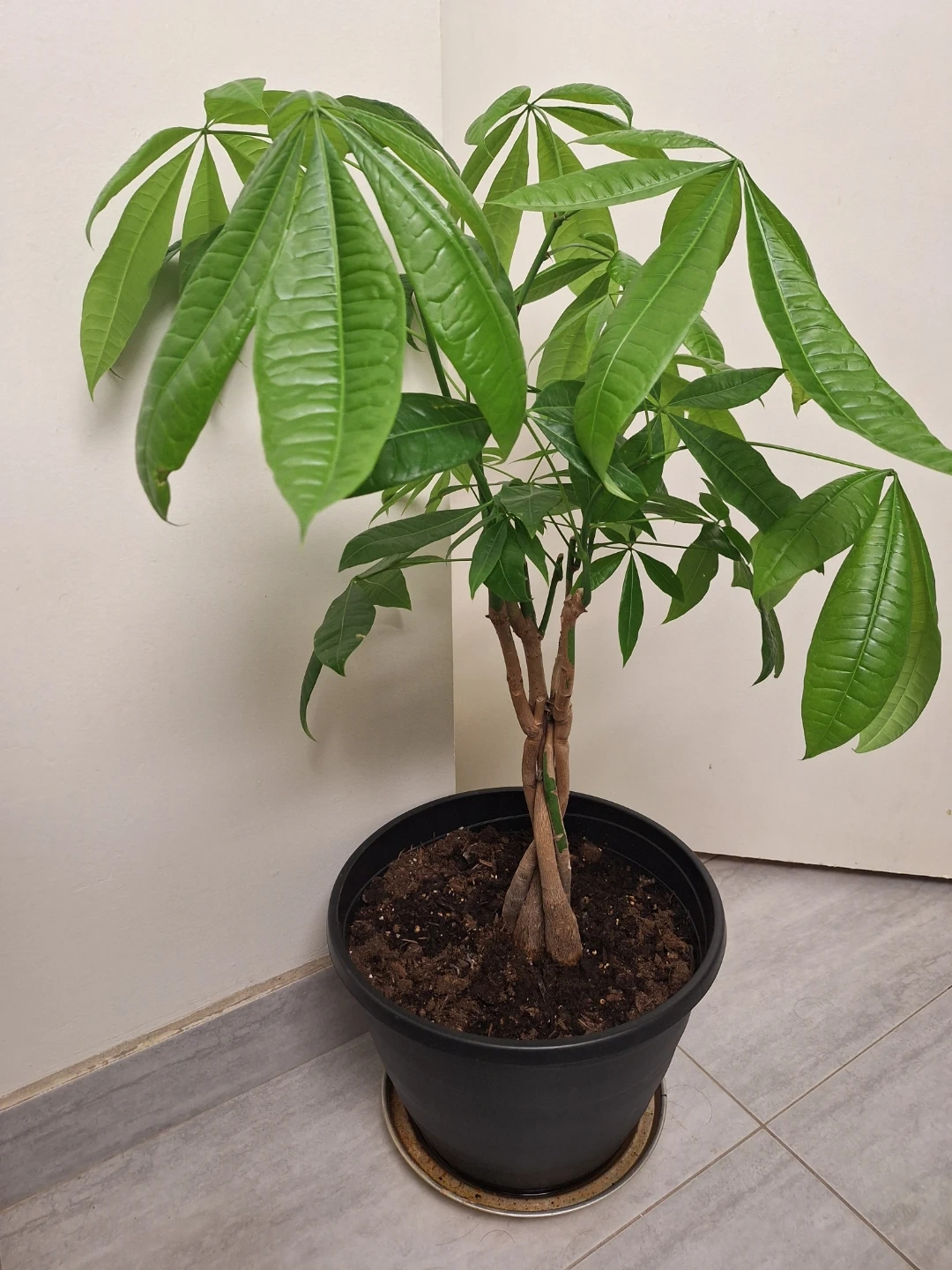 Pick up only.Healthy money tree plant in a black pot. It has lush green leaves and braided trunks. This plant is known for its unique appearance and is easy to care for.33.5" tall. New soil changed.