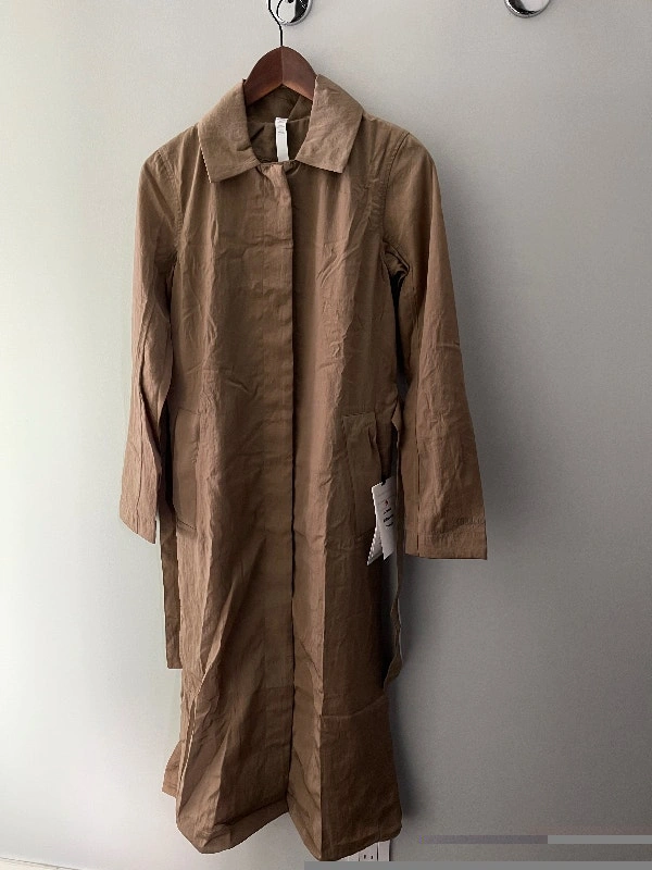 New with tags LULULEMON Women’s Always Effortless Trench in colour “frontier” or khaki, size 0. Great jacket, but I’m downsizing. Originally retailed for $198 plus tax. New with tags. Pickup at Davisville station.