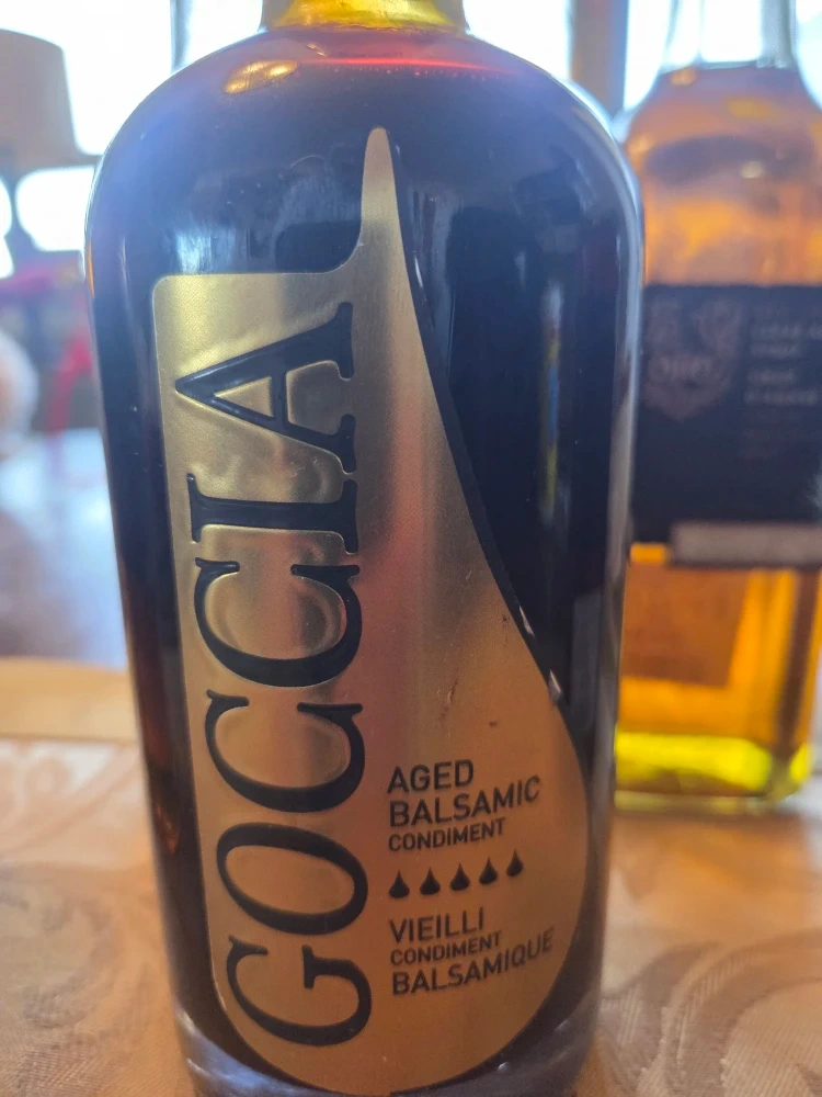 Selling a bottle of Goccia Aged Balsamic Condiment along with Ojio Raw Organic Clear Agave Syrup. Perfect for adding a touch of flavour to your meals!