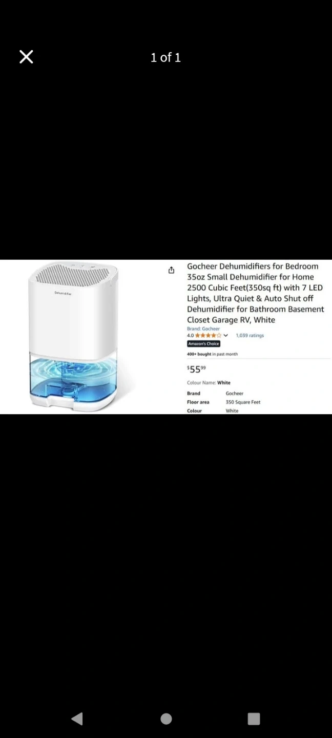 10Selling a Gocheer dehumidifier, perfect for small spaces! It's a 35oz small dehumidifier for a home up to 2500 cubic feet (350 sq ft). It comes in white and features 7 LED lights, ultra-quiet operation, and auto shut-off, making it great for bathrooms, basements, closets, garages, or RVs. Originally bought for $55.99