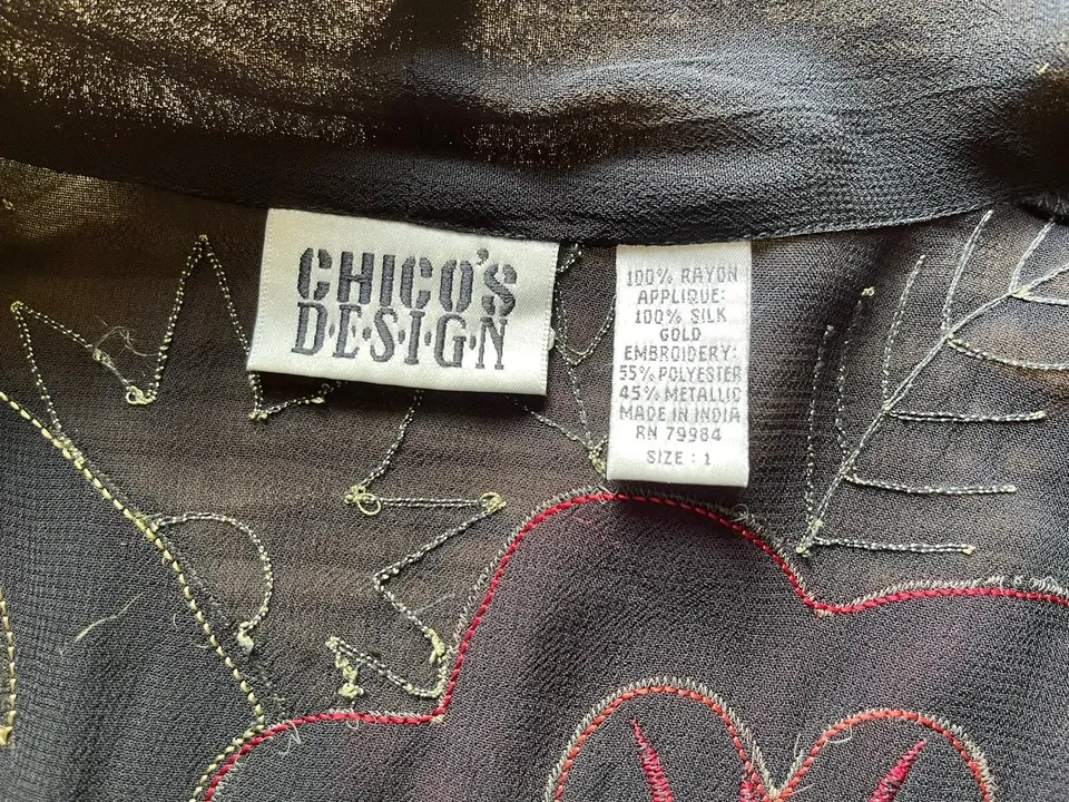 CHICO's Design Appliquéd & Embroidered Sheer Rayon Kimono Jacket