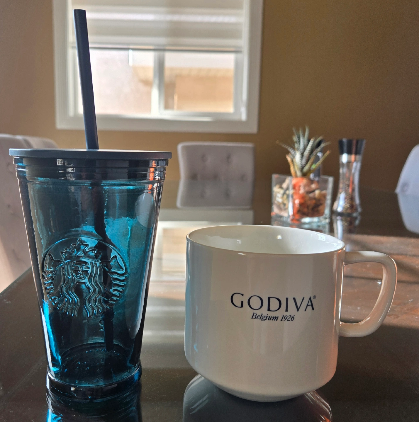 Selling a Godiva Belgium 1926 mug and a blue Starbucks tumbler. Both are in great condition and ready for a new home! Perfect for enjoying your favourite beverages. $20 for both OR $15 for Starbucks $3 for Godiva