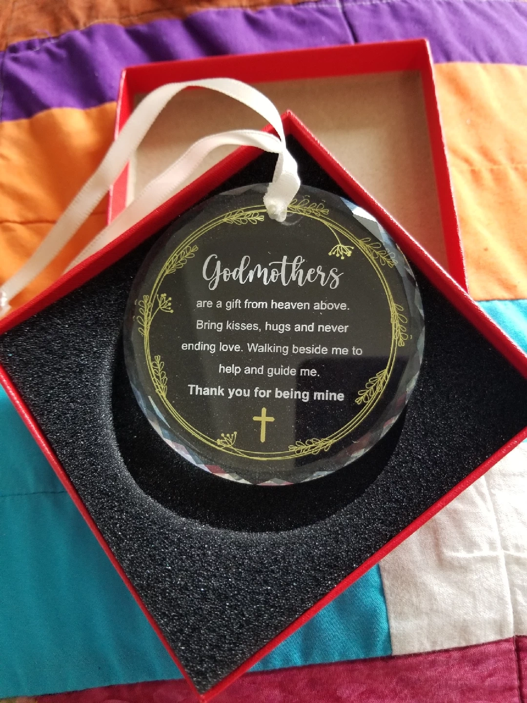 240A beautiful gift for a godmother! It says "Godmothers are a gift from heaven above. Bring kisses, hugs and never ending love. Walking beside me to help and guide me. Thank you for being mine." Brand new