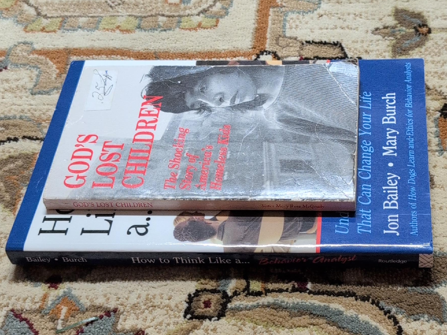 Two books for sale here! - God's Lost Children: The Shocking Story of America's Homeless Kids by Sister Mary Rose McGeady - How to Think Like a... Behavior Analyst by Jon Bailey and Mary Burch 5 dollars each