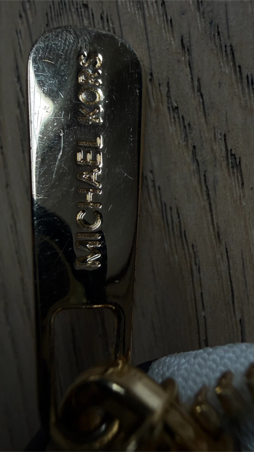 • Design: Iconic MK gold-tone logo plate and matching branded zipper pull.