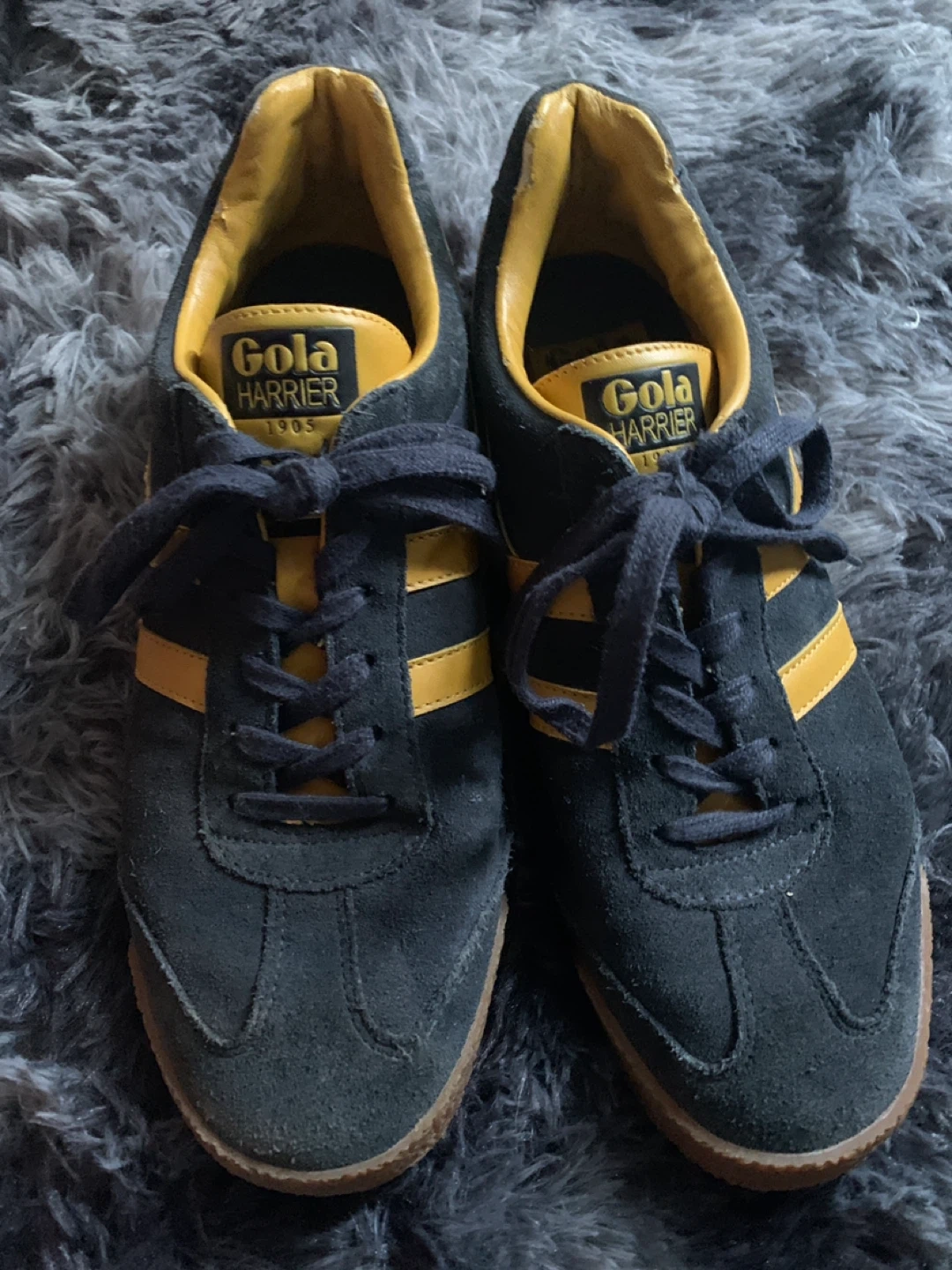 10Selling a pair of Gola Harrier 1905 sneakers in black and yellow! These have a classic look and are super comfortable for everyday wear. They're in good condition, ready for a new home!