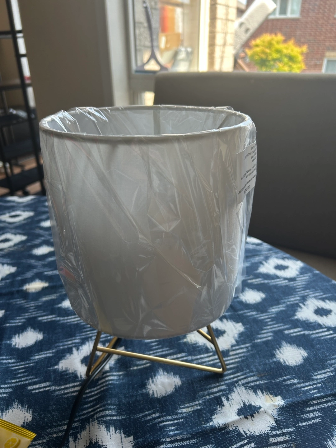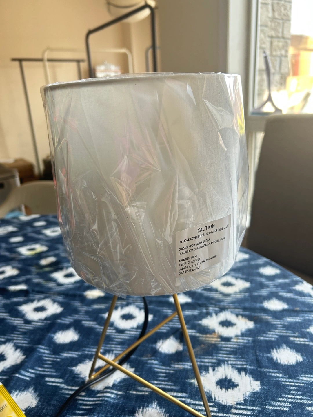 A beautiful table lamp. Features a white shade and gold base. A lovely piece for your bedside table to ease you into your sleep.