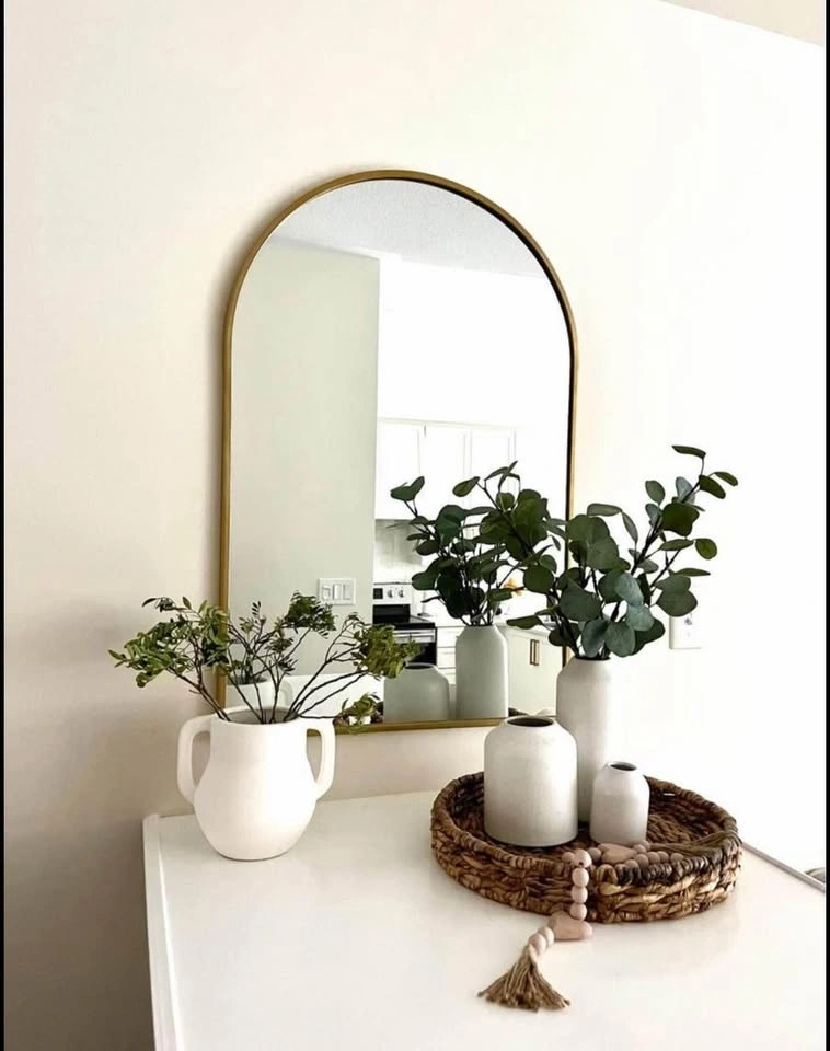 30 inch x 20 inch Distressed Farmhouse Arch Mirror Wall Decor