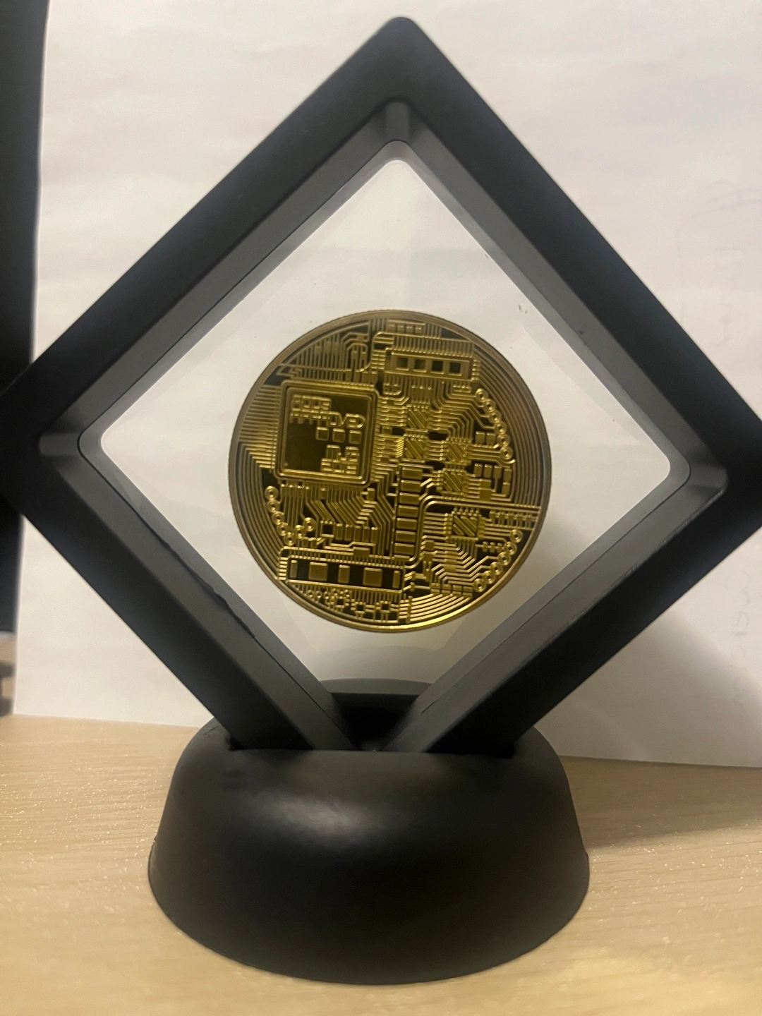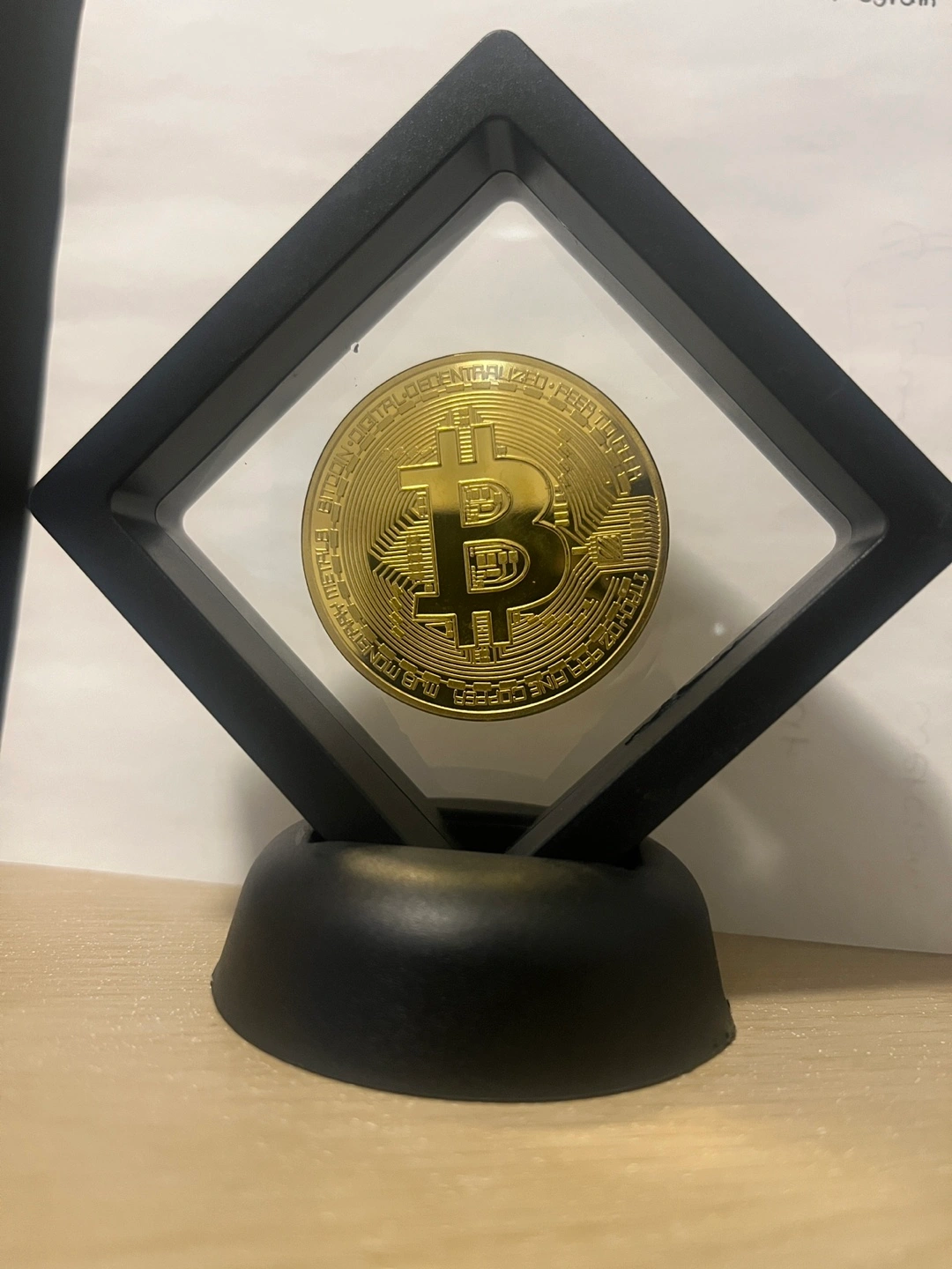 Add a touch of digital flair to your collection with this novelty Bitcoin commemorative coin! This eye-catching piece captures the essence of the crypto world. Comes in a black diamond-shaped display case with a stand. Coin-10$ With stand -15$