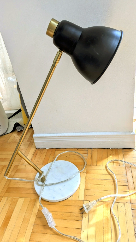 95Black lamp shade with gold base and a marble base. pick up near Stanley park on king st w