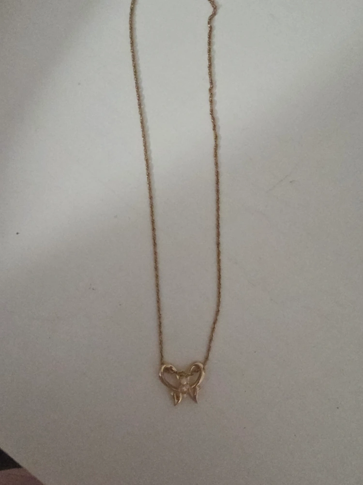 A delicate gold necklace featuring a butterfly pendant. It's in great condition and would make a lovely addition to any jewelry collection!