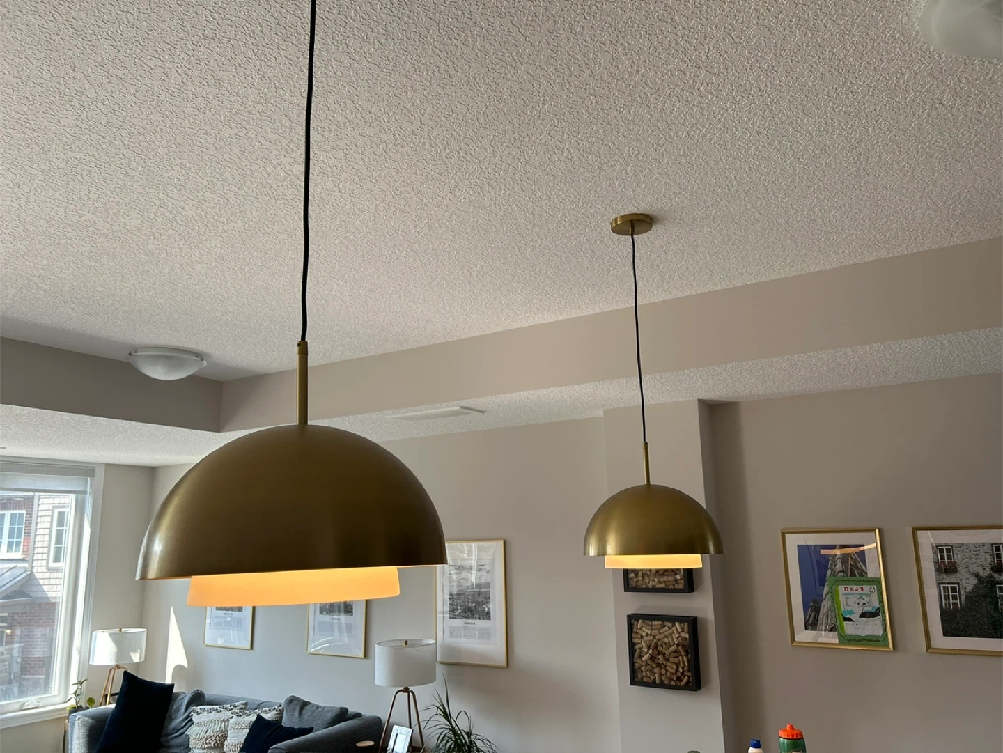 10Selling a stylish gold dome pendant light! It's in great condition and would look lovely in any kitchen or dining area. The light features a sleek, modern design with a gold finish and a white diffuser.