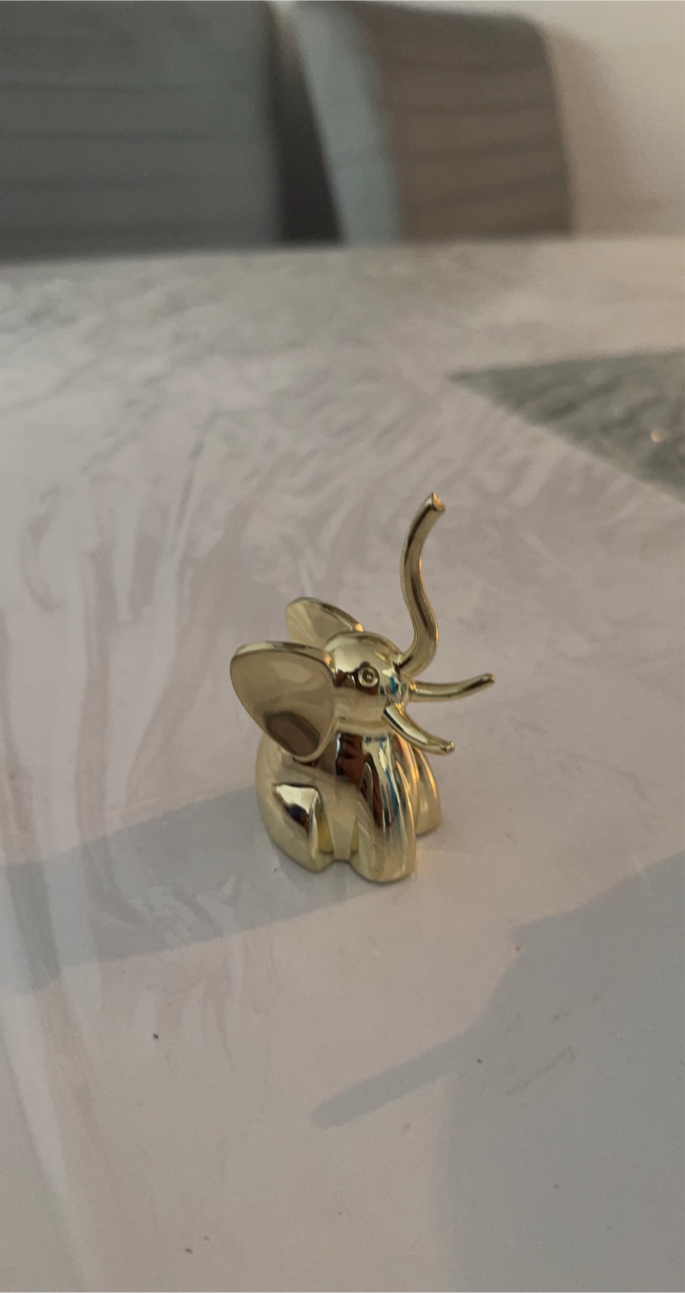 A cute little gold elephant figurine! Perfect for adding a touch of whimsy to any room