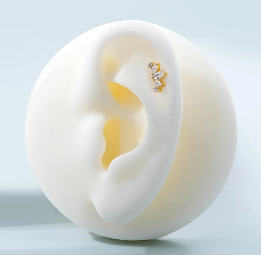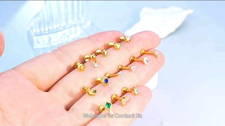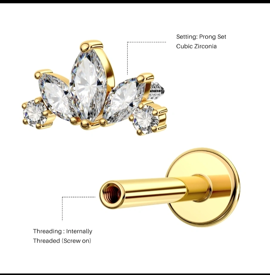 25This is a gold flat back stud from Toposh Piercing. It features a prong set cubic zirconia design and is internally threaded (screw on). It is made of hypoallergenic, nickel & lead-free material, making it suitable for sensitive skin made with Genuine 100% Titanium and gold plated. free shipping. free second pair or other style pair. price is for both, as your second pair is a gift π. by referring anyone to purchase every time you or someone you refer make a purchase, you get a free gift π.