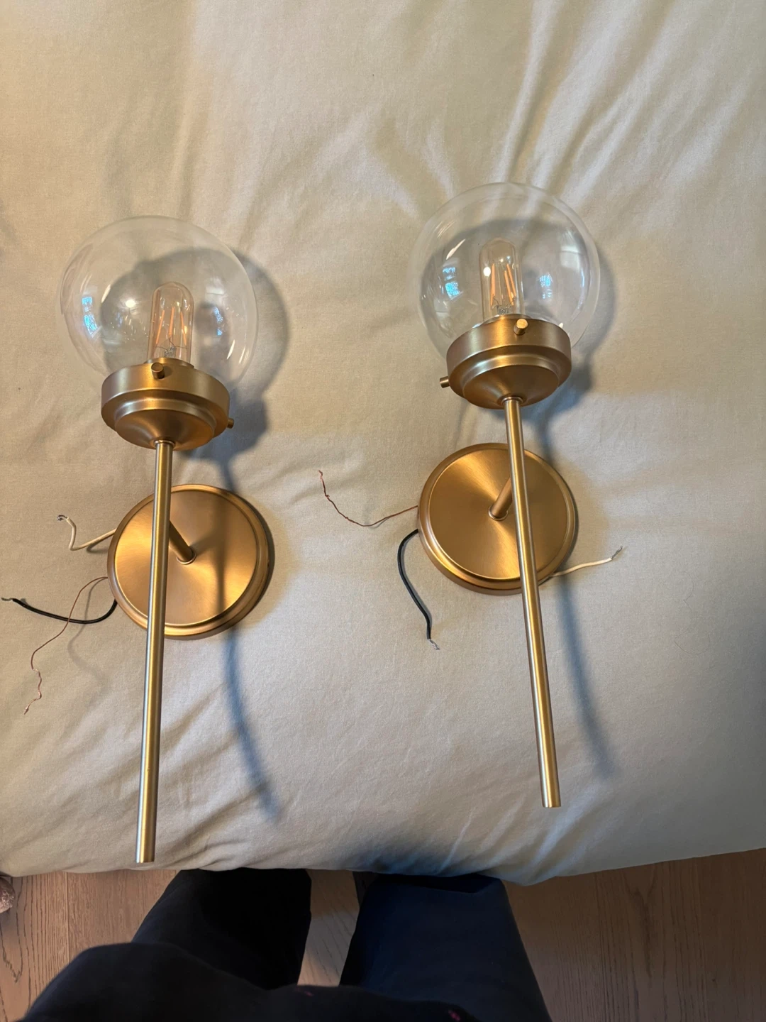 Selling a set of two stylish gold globe wall sconces! They're in great condition and would add a touch of modern elegance to any room. Perfect for adding some ambient lighting to your space