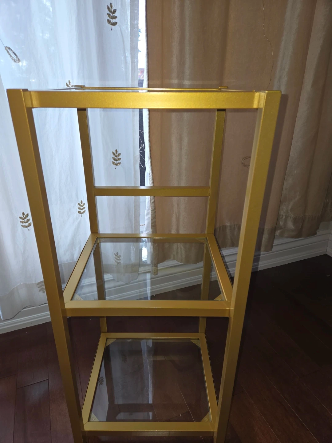 15Looking to add a touch of elegance to your space? I'm selling this stylish stand featuring a gold metal frame and glass shelves. It's perfect for displaying your favourite plants or decorative items! It has adjustable legs for leveling.