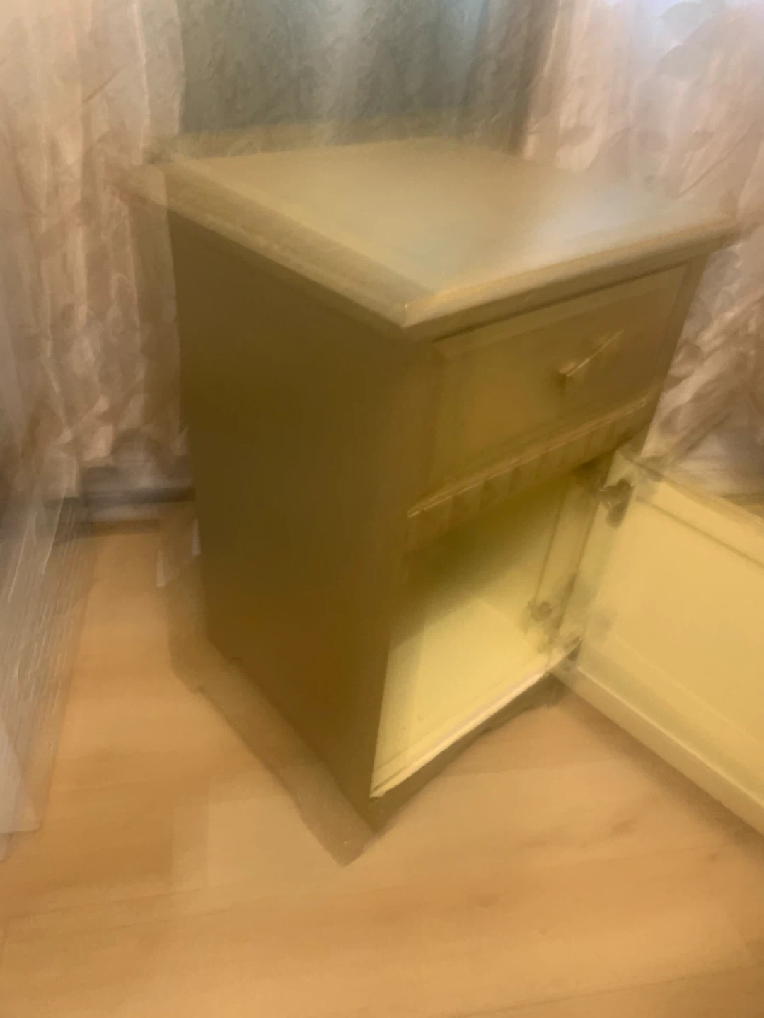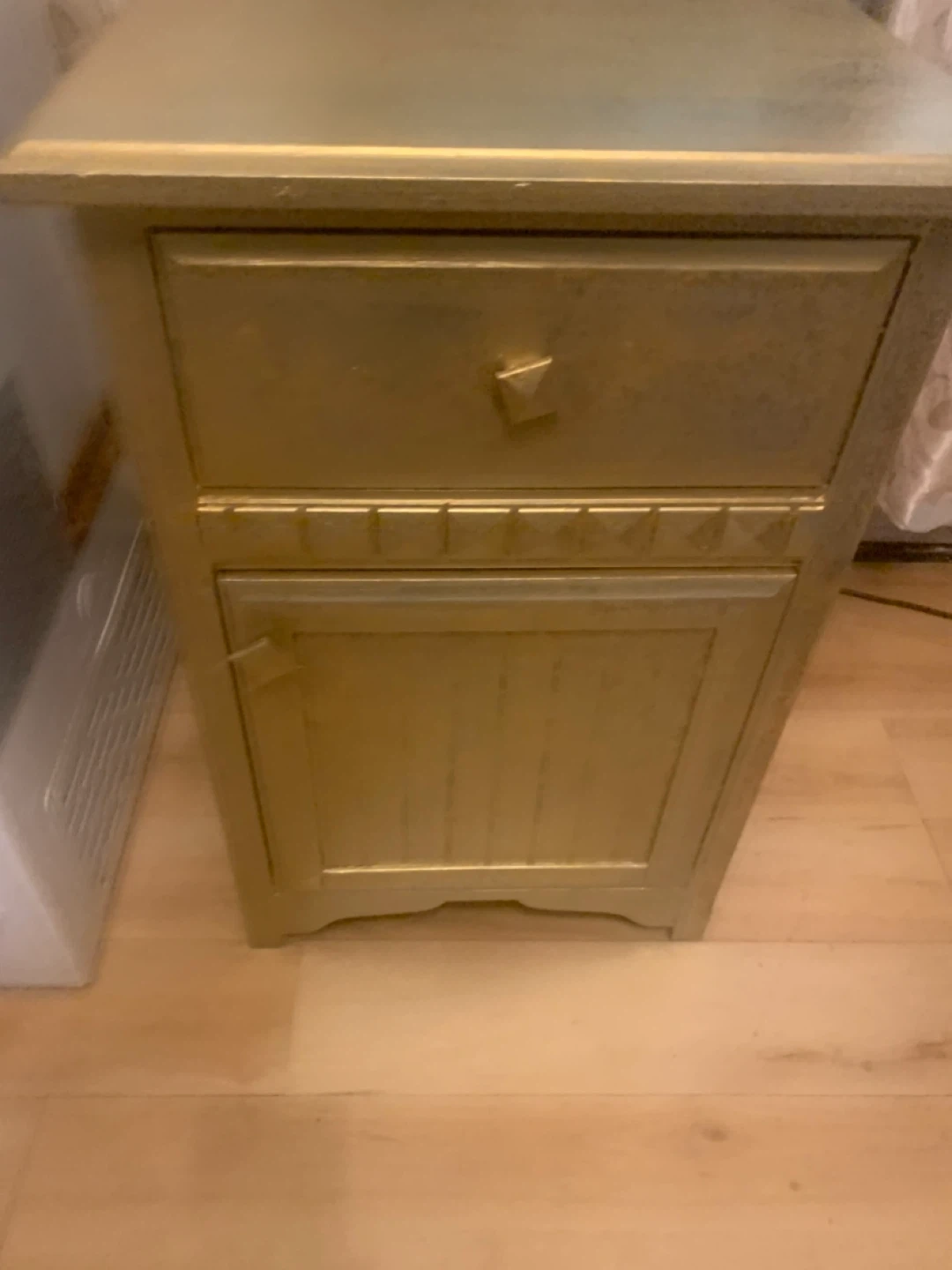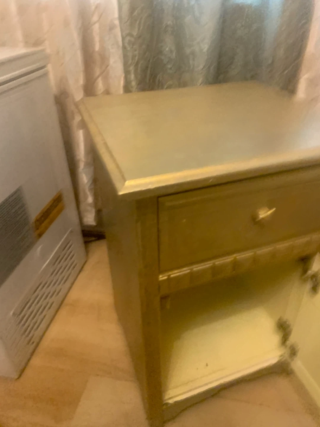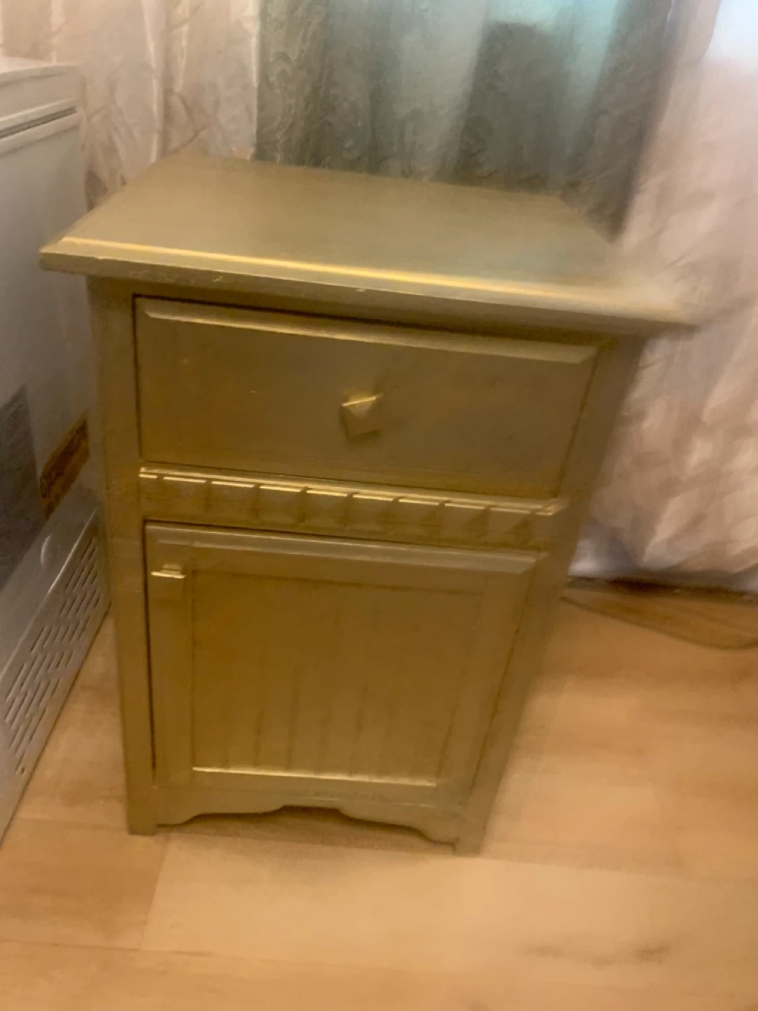 Gold Nightstand with Drawer and Cabinet