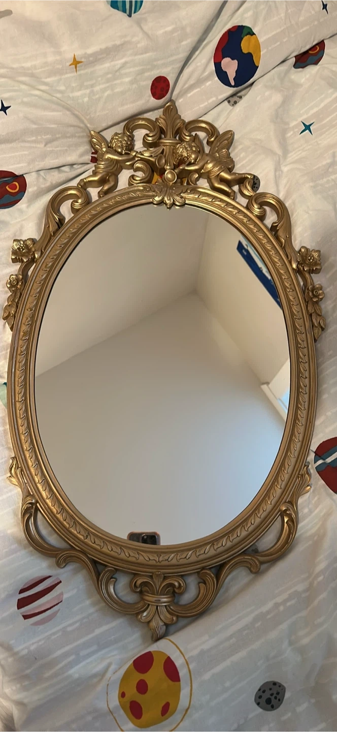 10Selling a beautiful gold oval mirror with decorative details. It would be a great addition to any room! Price is negotiable