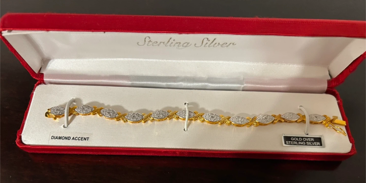 Selling a beautiful sterling silver bracelet with diamond accents! It's gold over sterling silver and comes in its original box. Perfect for a gift or to treat yourself