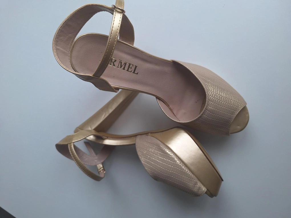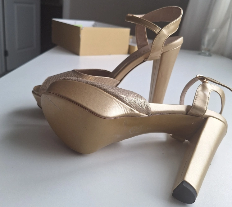 25Gorgeous gold platform heels. Ankle strap closure. worn once. Like new.