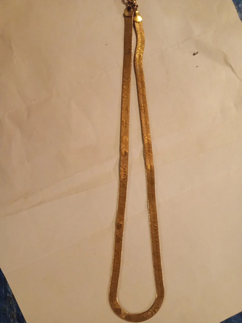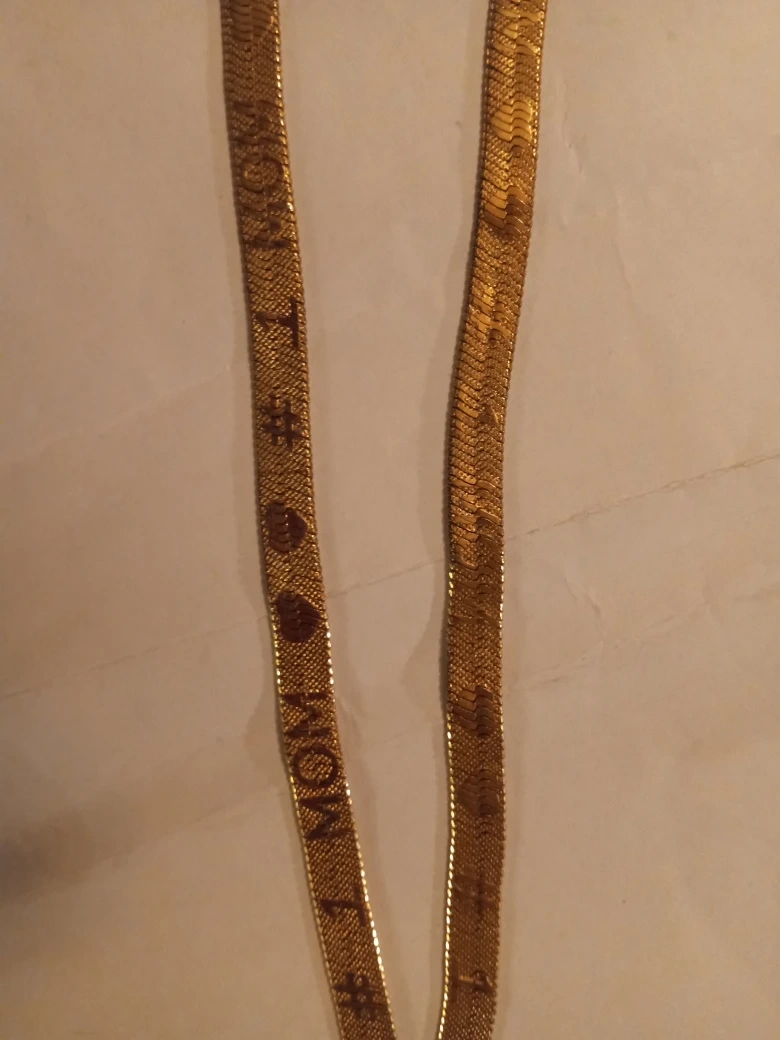 111A lovely gold-tone herringbone chain necklace. It features a repeating '#1 Mom' design. It's in great condition and ready to wear