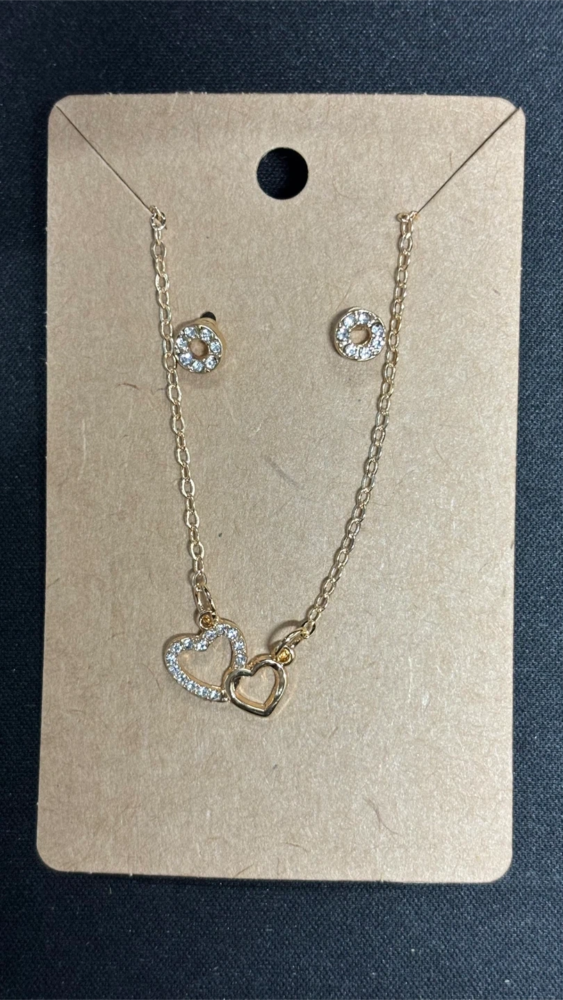 Cute gold-tone necklace with double heart pendant and matching stud earrings. Perfect for adding a touch of sparkle to any outfit! Selling this item in excellent condition — clean, well-kept, and from a smoke-free, pet-free home. Check out my other listings for bundle deals! Feel free to make an offer on any item — I’m happy to negotiate a fair price that works for both of us. Always open to a good bargain! Available for pick-up or meetup. Closest intersections: 📍Lansdowne & Queen Street West 📍Dufferin & Queen Street West 💲Cash or e-transfer accepted. ⚠️ Serious inquiries only — please message only if you’re ready to buy. First come, first served. Message me if you’d like more details. Thanks for your understanding and interest! ✨