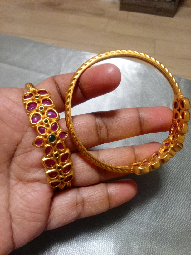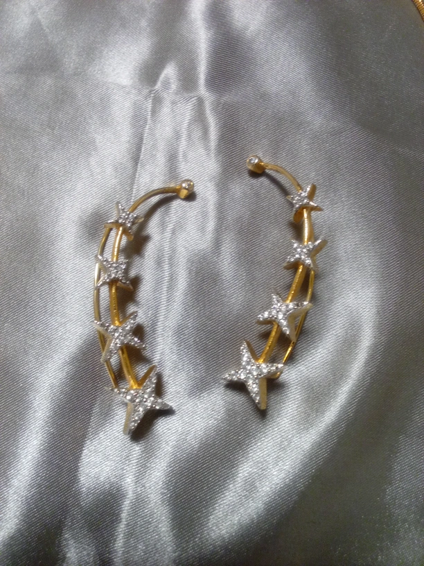 Gold Tone Indian Jewelry set, includes a pair of earrings with a small dangling pearl, a pair of ear cuffs with a star design and snake design with drops and a pair of bangles with red and green stones. Each set is 30$, brand new . pickup at 16th ave SE Calgary. cash or transfer is accepted.