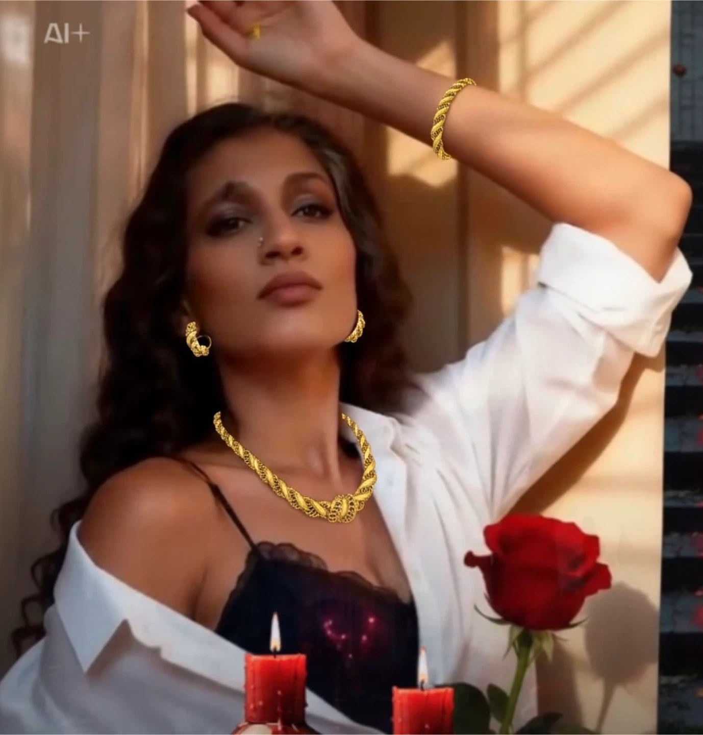 353Elevate your style with this stunning gold-tone jewellery set, featuring a necklace, bangle, ring, and earrings, perfect for adding a touch of elegance to any occasion. This jewellery set is in new condition and is 14k gold plated. If the ad is up, the jewellery set is still available!