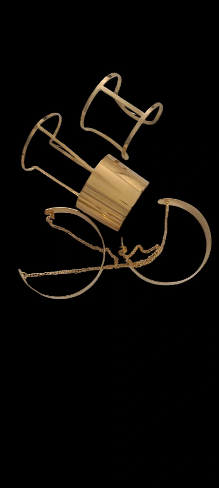 Set of gold tone metal bracelets. Includes three different styles. One wide cuff, one thinner cuff, and one with a chain detail. Open style cuffs. pick up harbour landing