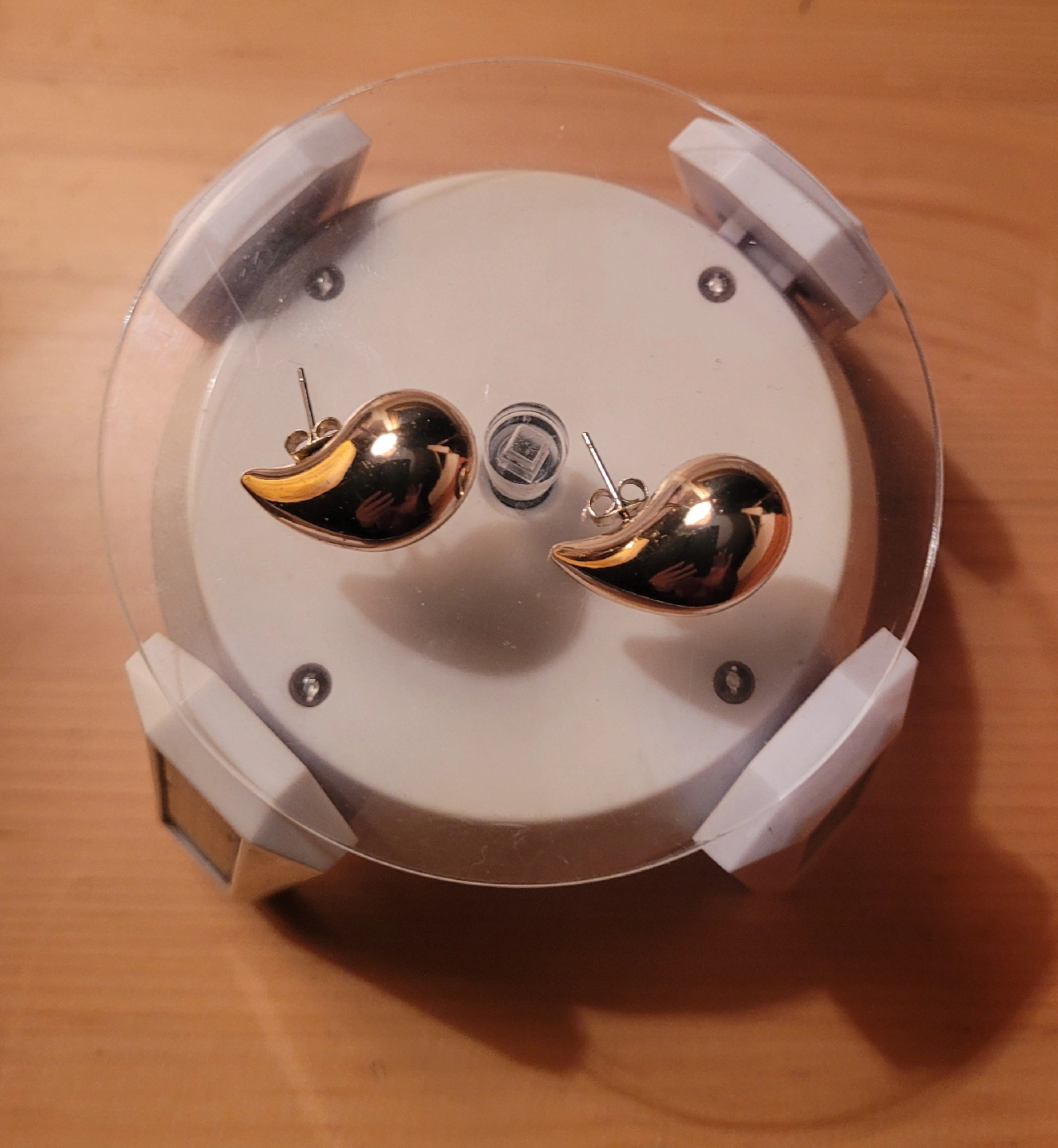 1000+These gold tone earrings have a tear drop shape and are in used condition. They are perfect for a night out, or to dress up a casual looks. If the ad is up, they are available!