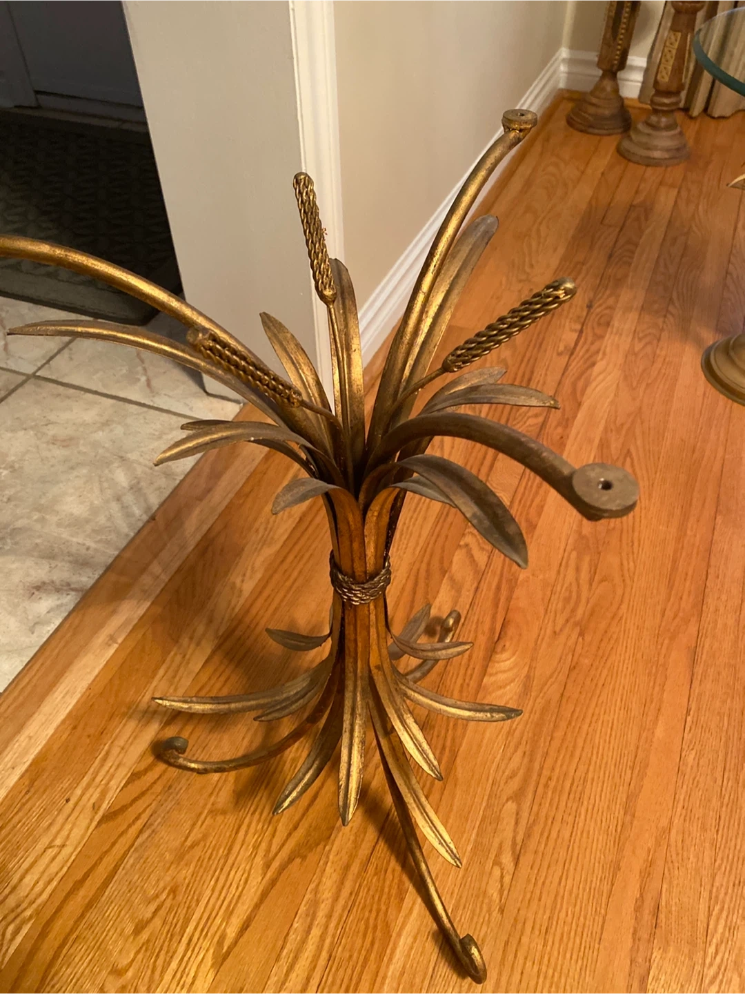 Selling a unique gold wheat side table! It's a beautiful decorative piece that would look great in any living room or bedroom. It's in good condition and ready for a new home