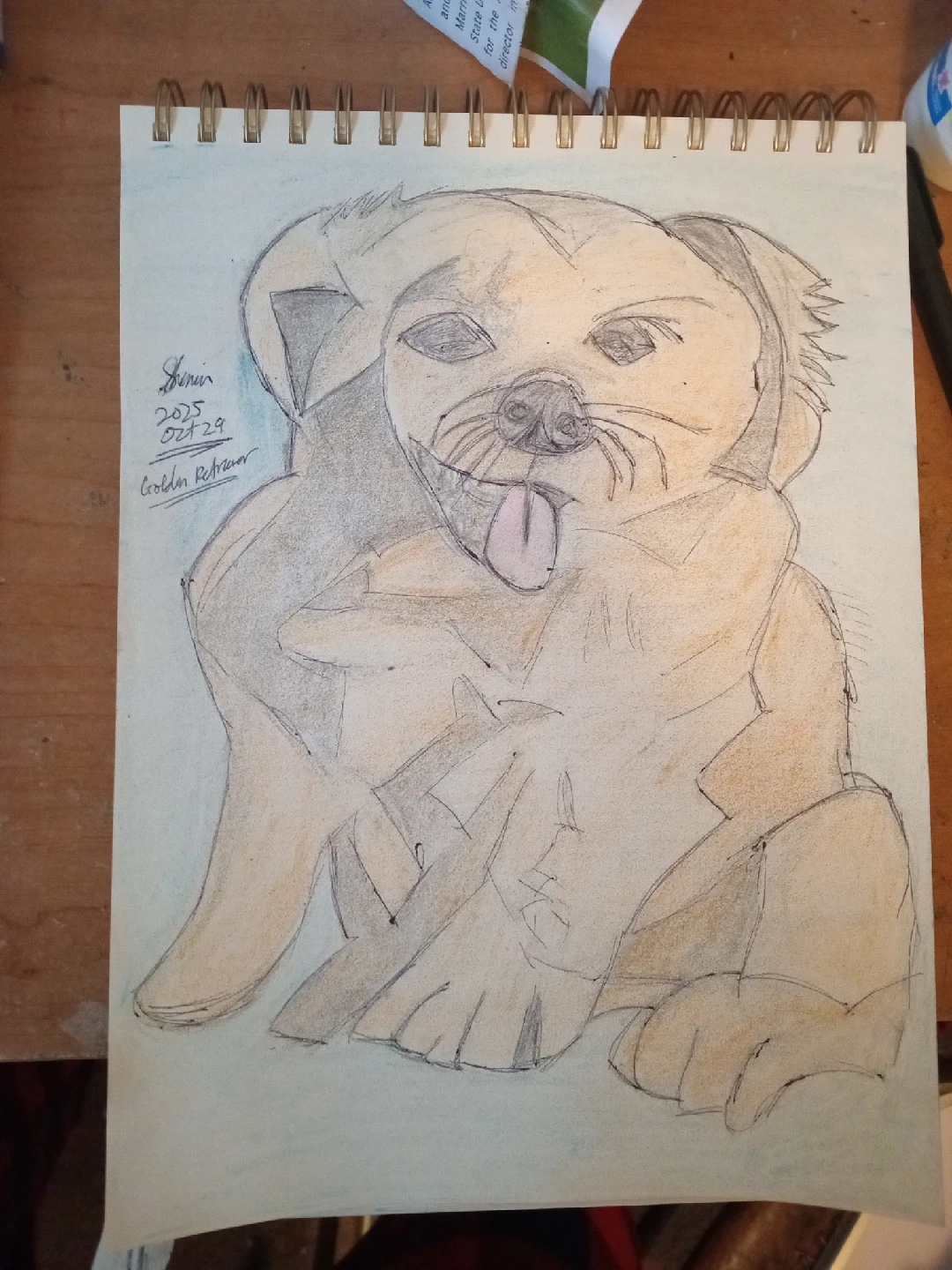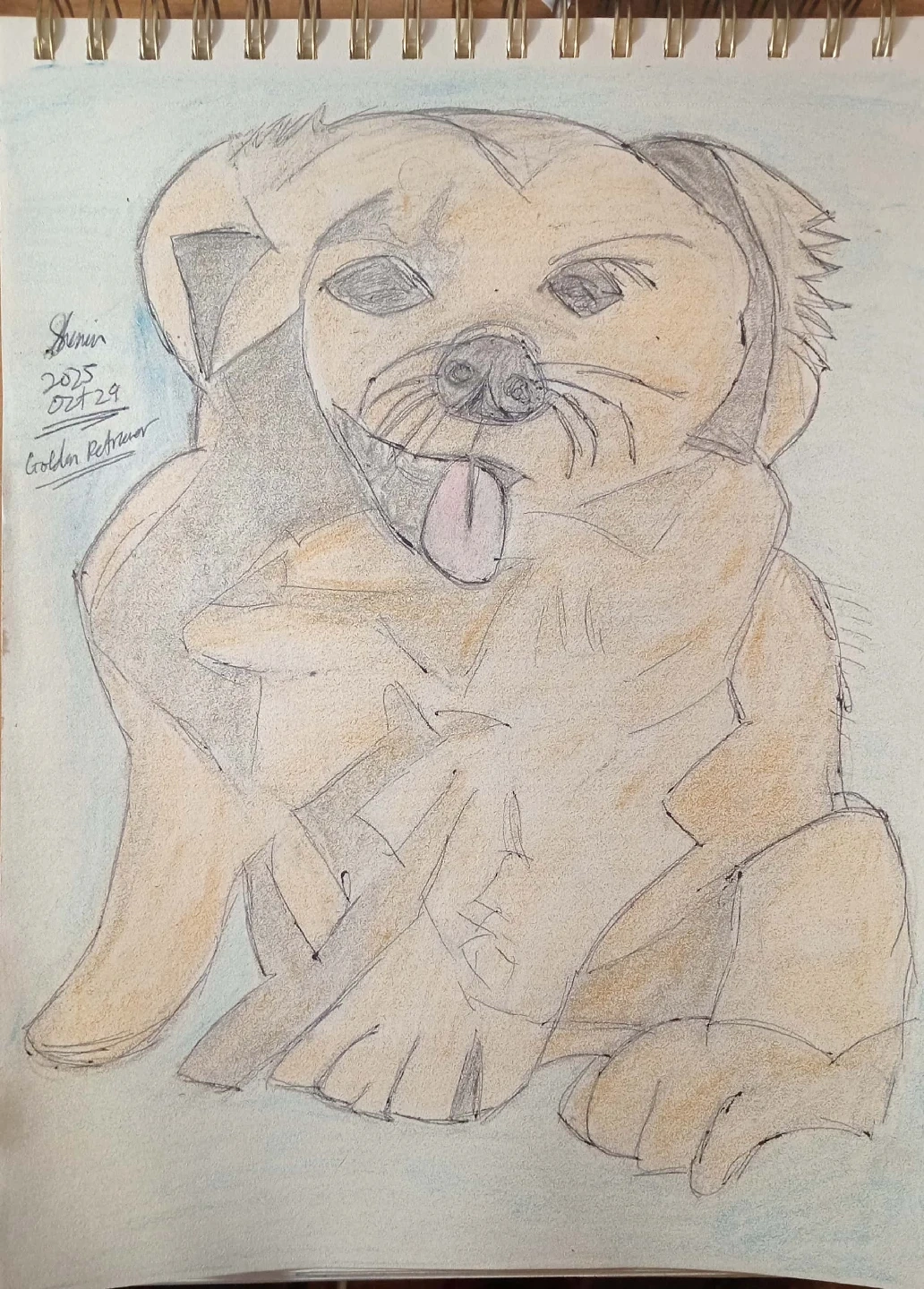 Golden Retriever Drawing Illustration by custom artist Sherwin