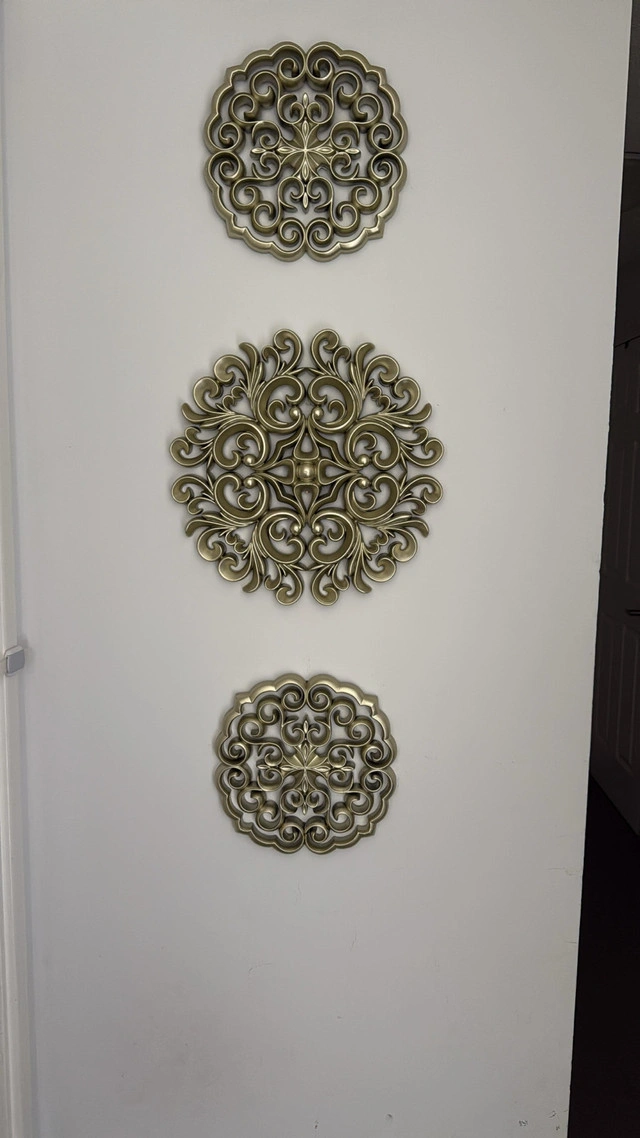 Beautiful set of 3 golden round wall accents - perfect for adding a touch of glam to any room. Lightweight and easy to hang. Looks stunning above a sofa, bed, or entryway. Comes in varying sizes for a layered look. Comes from a pet-free and smoke-free household. Pick-up in Mississauga. This is part of a moving sale - I am also selling furniture, electronics, and other household items. Please check my other ads.