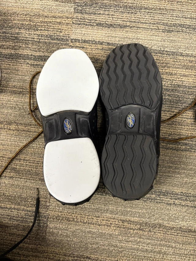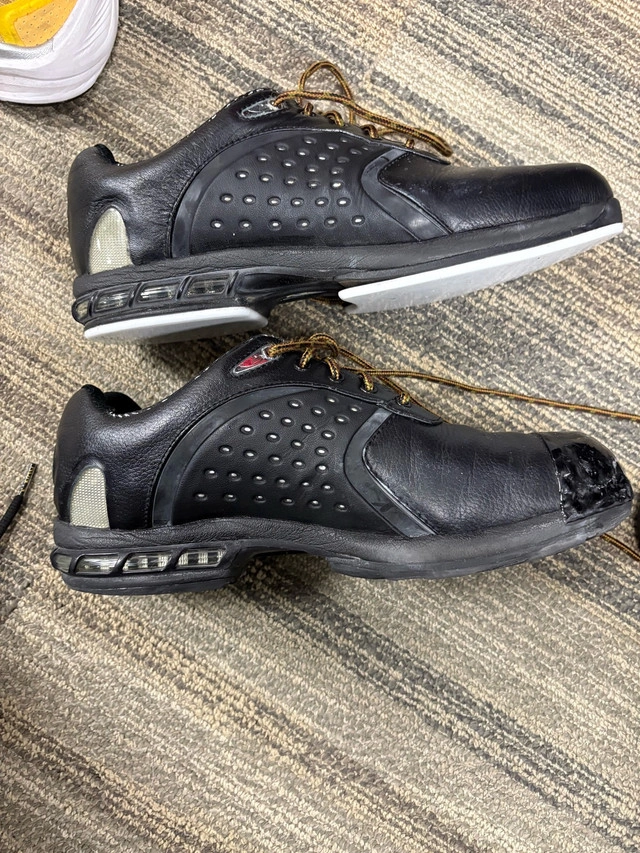 Goldline Silver Podium curling shoes. Designed for a left-handed curler, these shoes are a size 9 wide. Used good condition