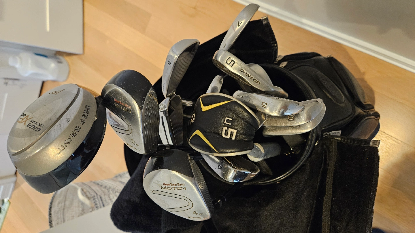 Selling a set of used golf clubs with a black Maya golf bag. Driver, 3 wd, 4 wd, 5wd, irons (pw, 9, 8, 7, 6, 5, 4, 3, S), putter