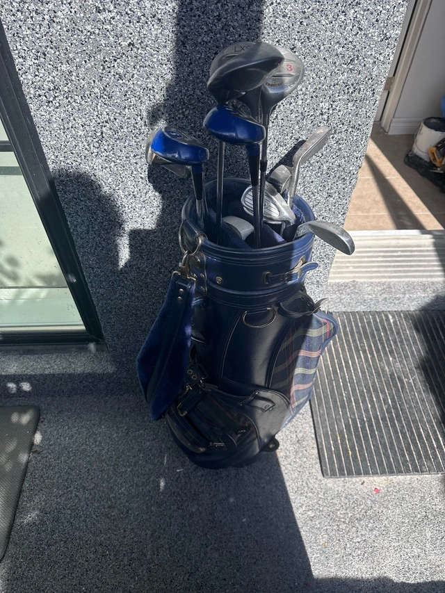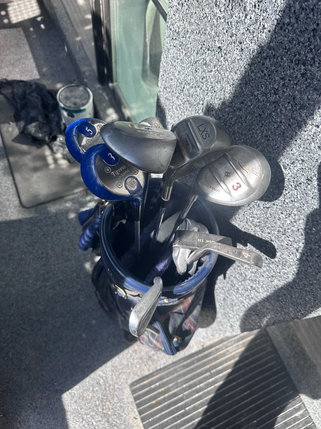 12 clubs (half right and half left) + bag + balls + pins. For sale by owner.
