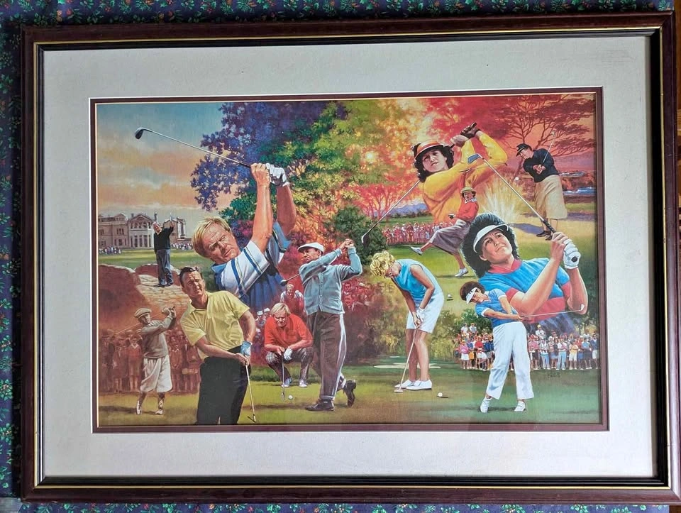 10- A colorful print - Jack, Arnie, Ben, Bobby, Nancy, Babe and more - 30"w x 22 1/2"h