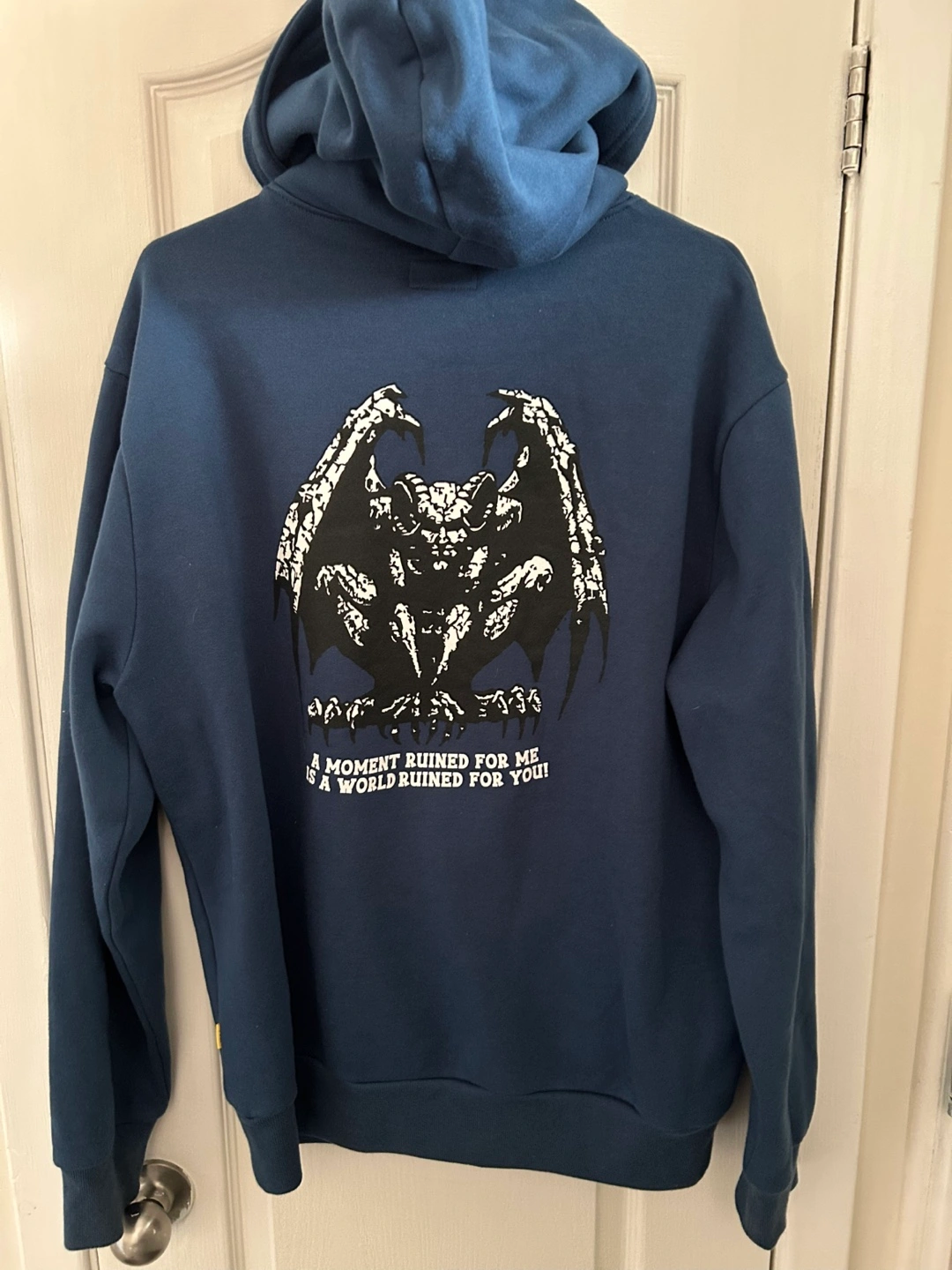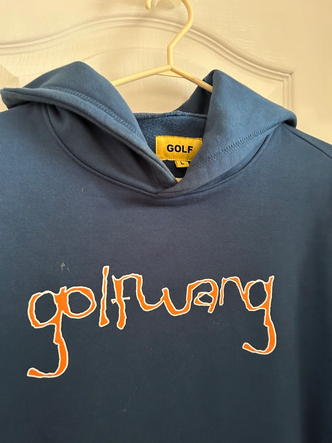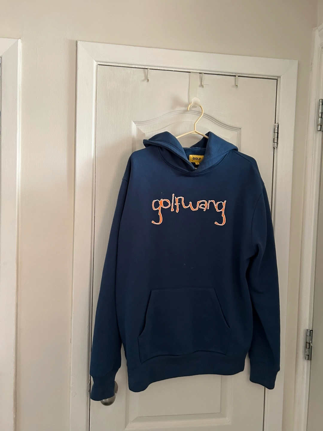 Selling a Golf Wang hoodie by Tyler the Creator in blue! It features the golfwang logo on the front and a graphic on the back. It's in great condition and ready for a new home! Smoke free/pet free home Pick up only (Garden and Dundas) whitby
