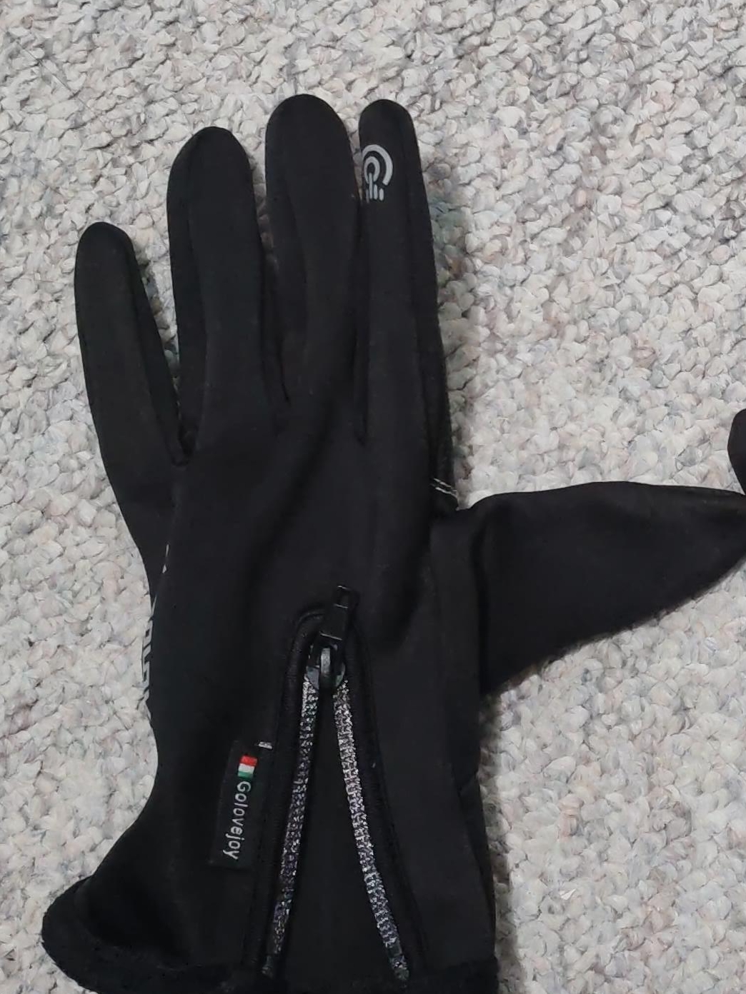 94Selling a pair of GOLOVELY black gloves! They look to be in great condition, perfect for keeping your hands warm on those chilly days. They have a zipper and logo on them