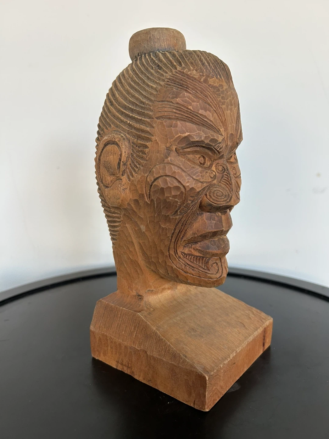 Vintage Māori Hand-Carved Wood Bust – Signed