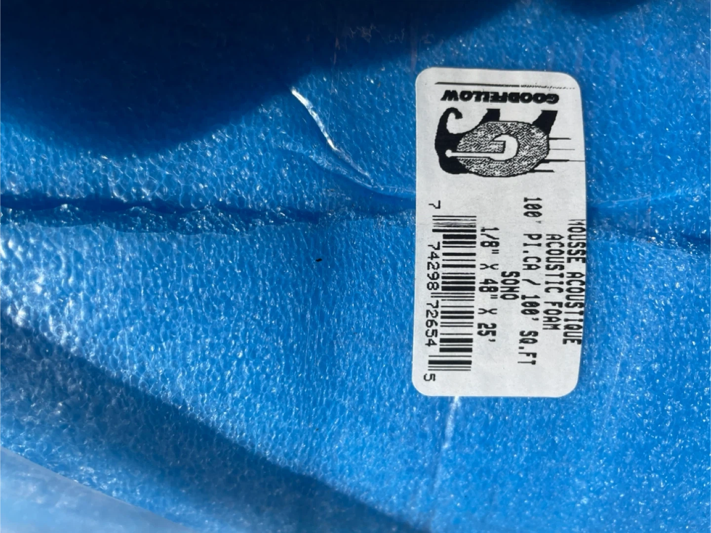 10Selling 4 rolls (60$ per roll) of Goodfellow acoustic foam. It's blue and covers 100 square feet. Dimensions are 1/8" x 48" x 25". Great for sound dampening! Brand new. Sells for 80$ per roll new plus tax. Selling for 60$ each.
