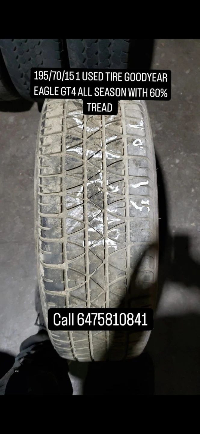 27Selling a used Goodyear Eagle GT4 all-season tire, size 195/70/15. It has about 60% tread left.
