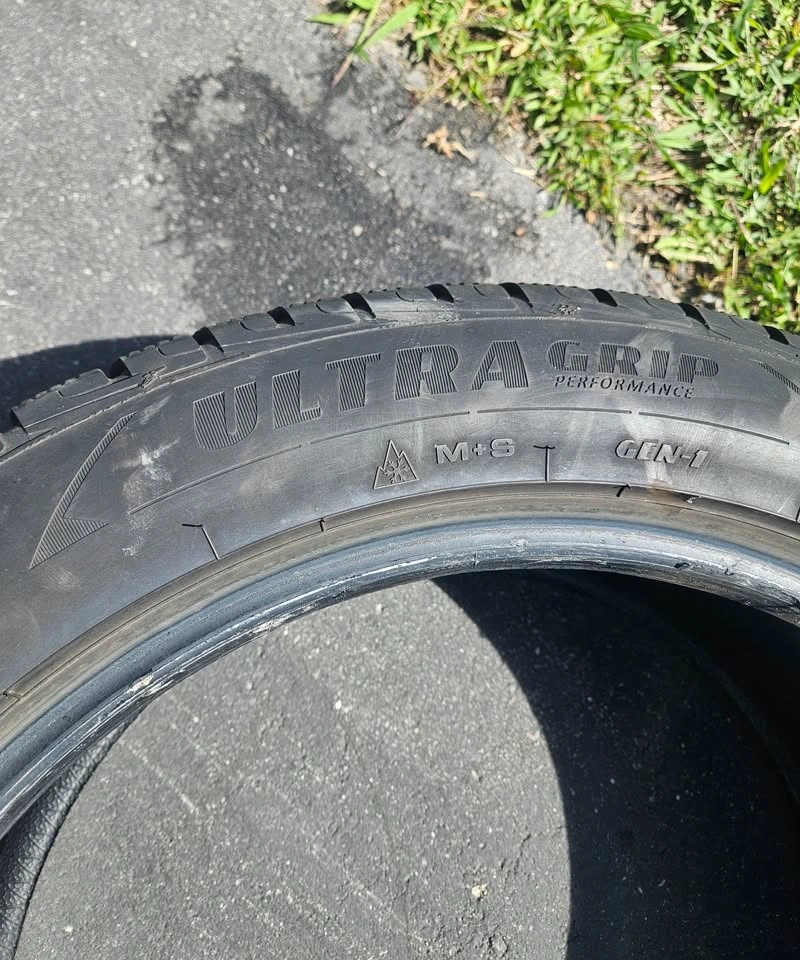 Selling a Goodyear Ultra Grip Performance tire. The size is 255/50R20. It is marked M+S. set of 4 winter tires. used for just 1 season.